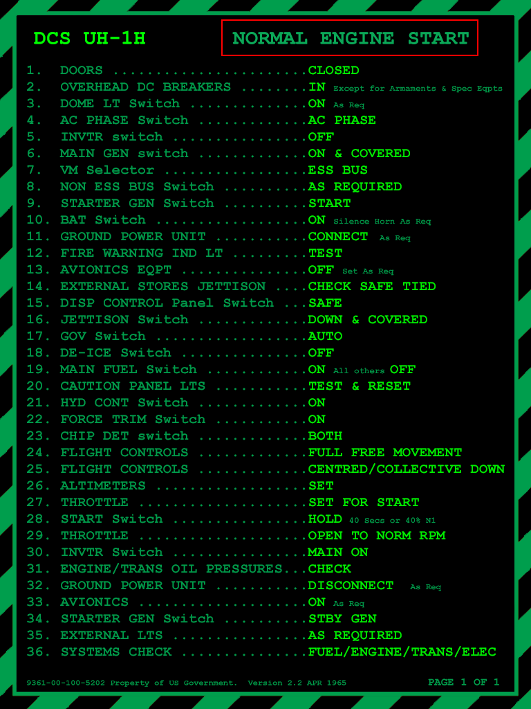 主页 > 用户文件 > UH-1H Start-up Checklist - Kneeboard