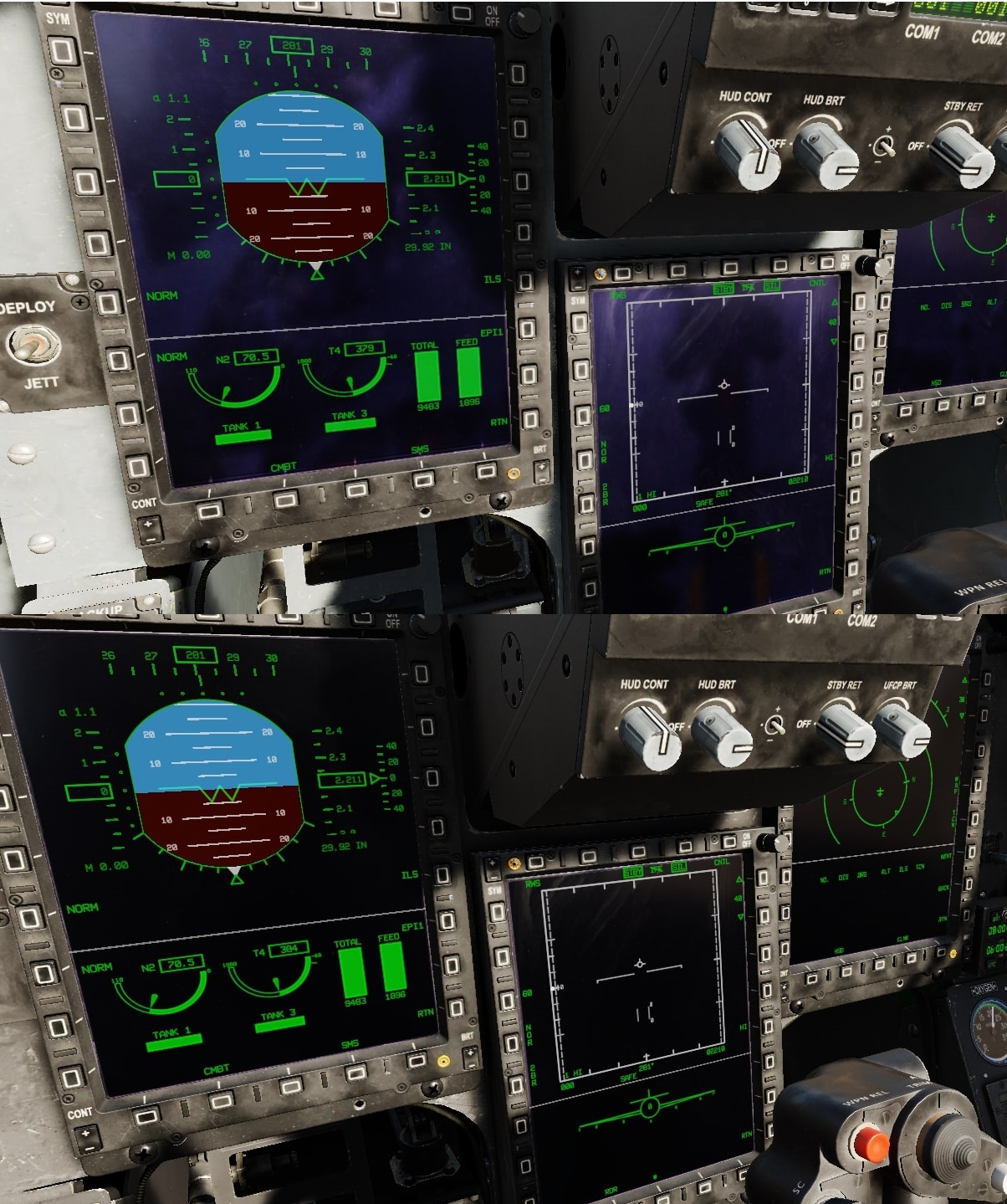 Removed the static baked-in reflection on the HUD, three MFCDs and two instrument gauges.