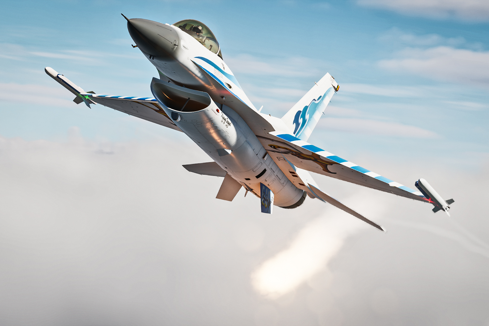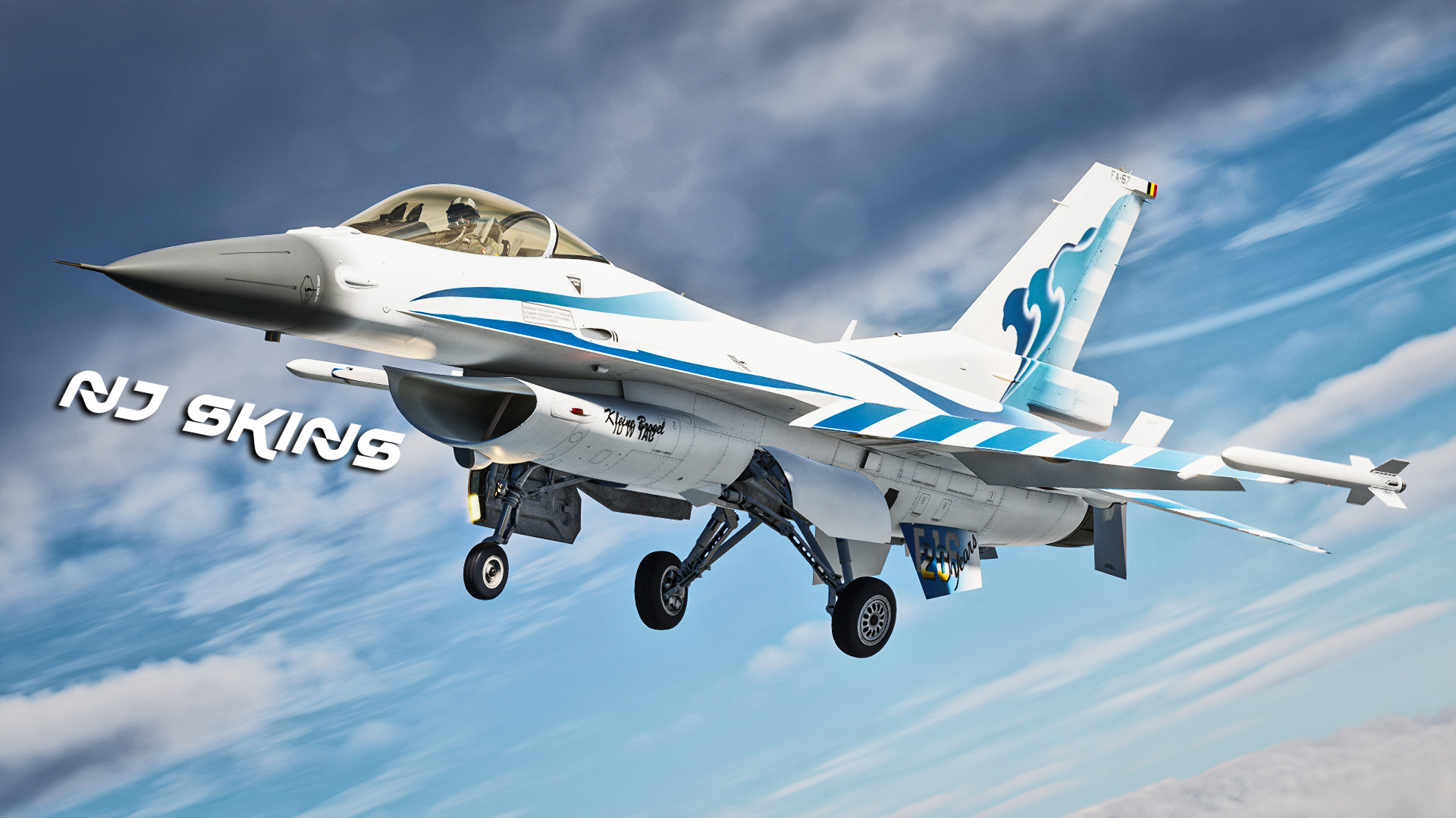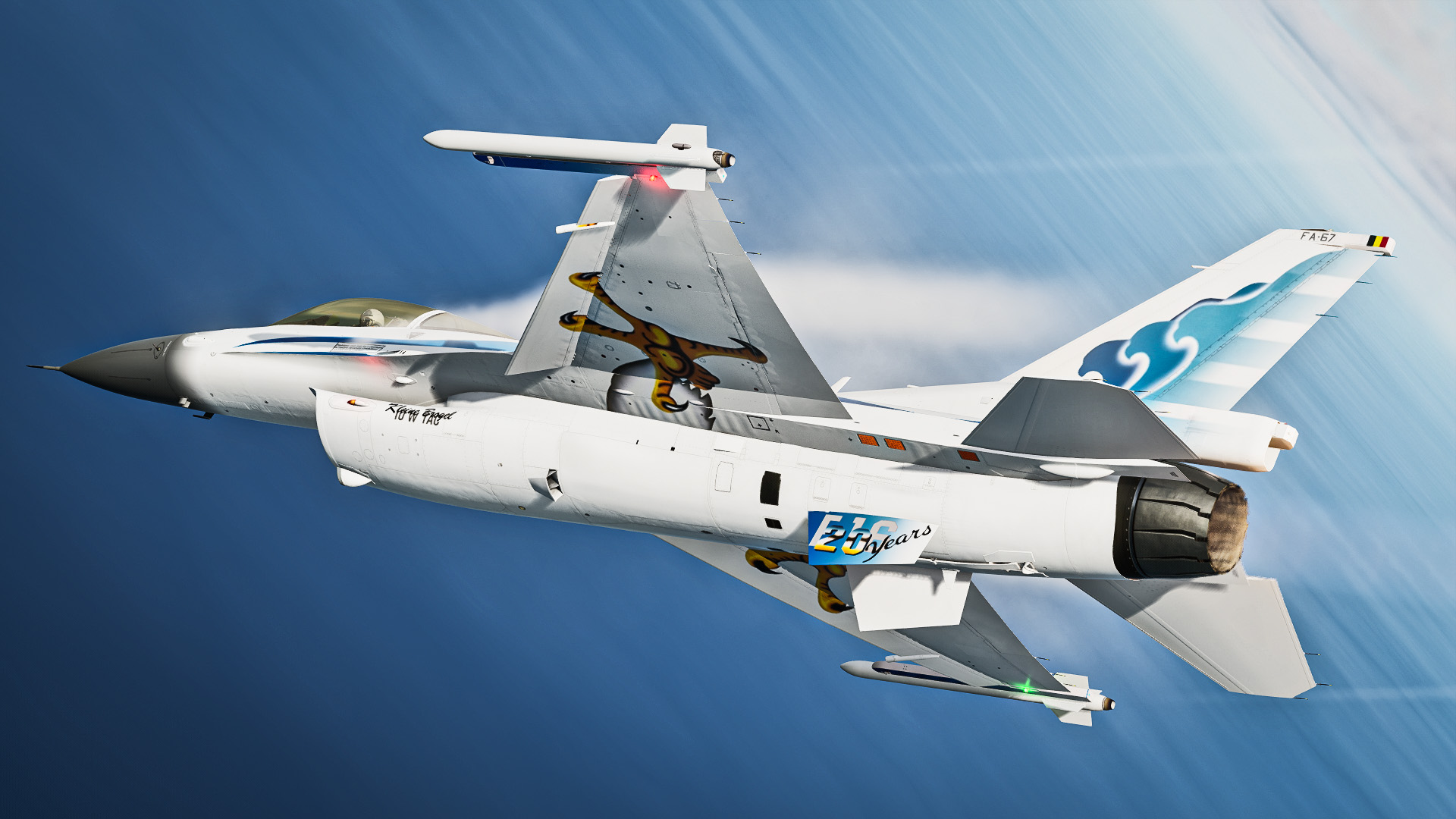 The White Falcon is a unique Belgian Air Force F-16 display jet known for its rare blue gradient and striking claw markings.