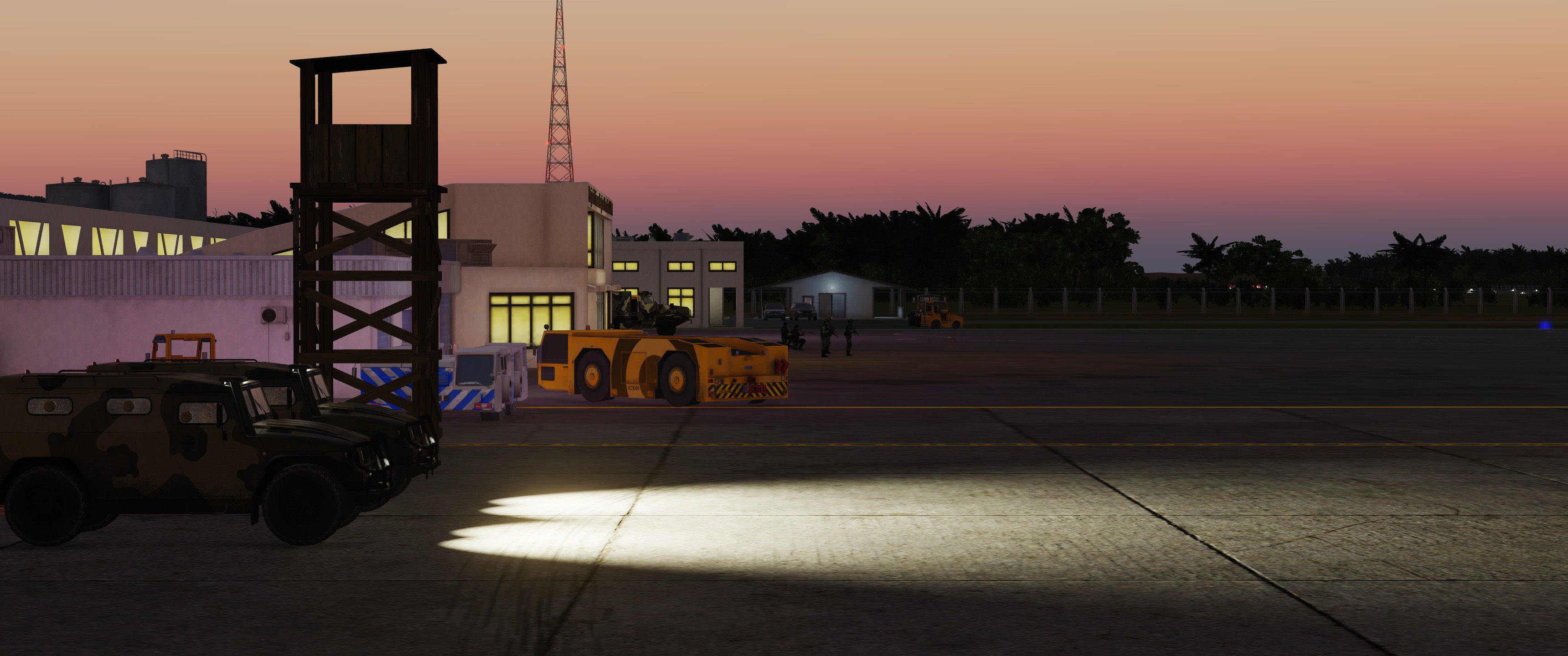 Airbase populated with Statics and ambient units.
