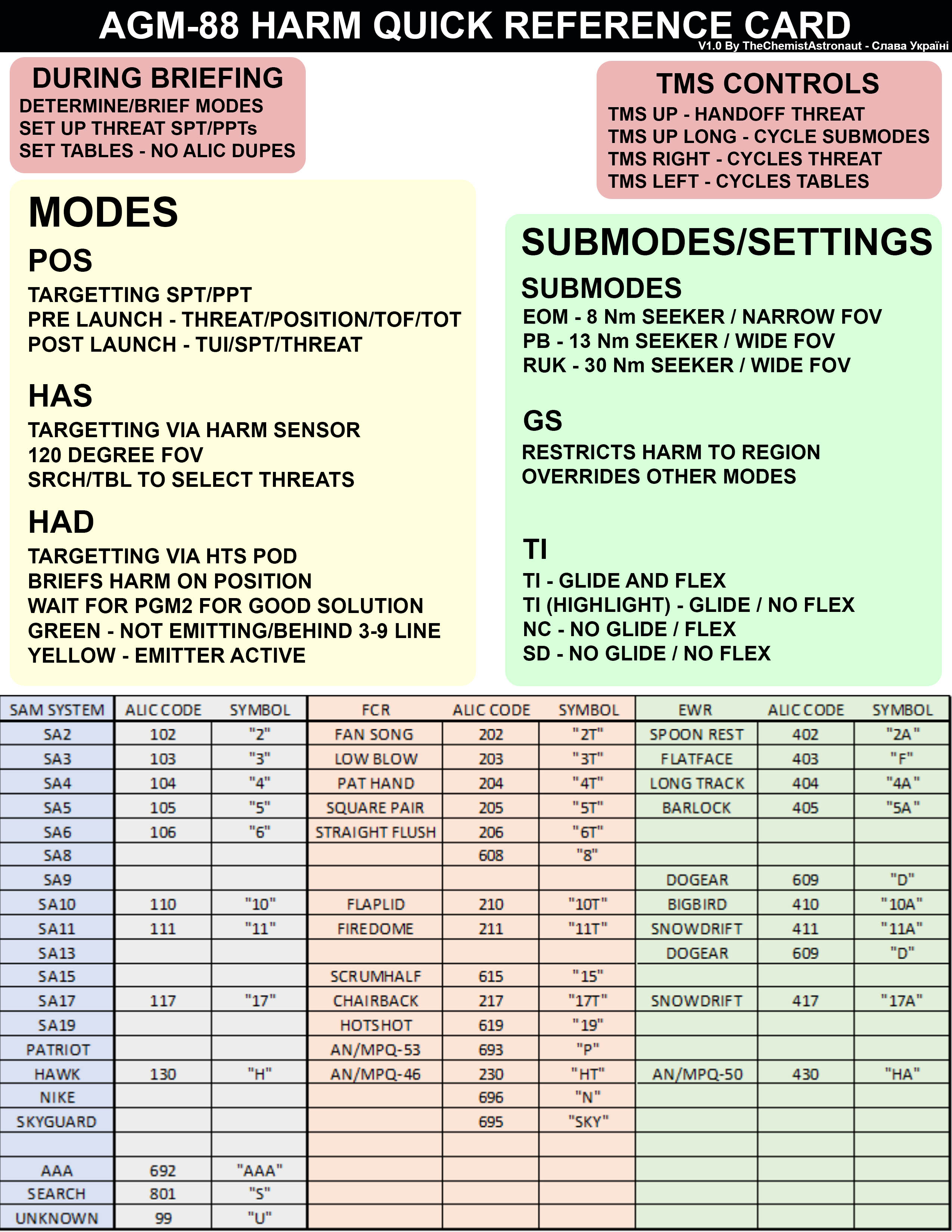 Here is a printable version of the ALIC Tables for the AGM-88C HARM.