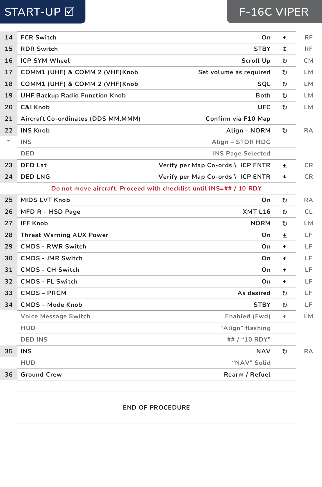 F16 Fast Cold Startup Kneeboard with Screenshots