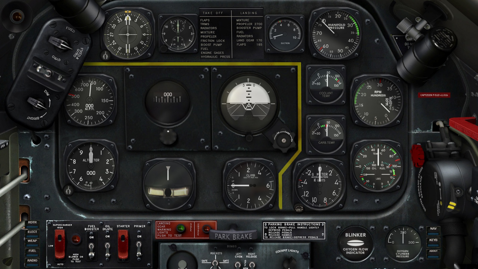 For this profile i exported Radio Indicator Compass, Ias, clock, suction indicator, manifold pressure, altimeter, gyroheading, Flight Indicator ADI, Horizont caged,