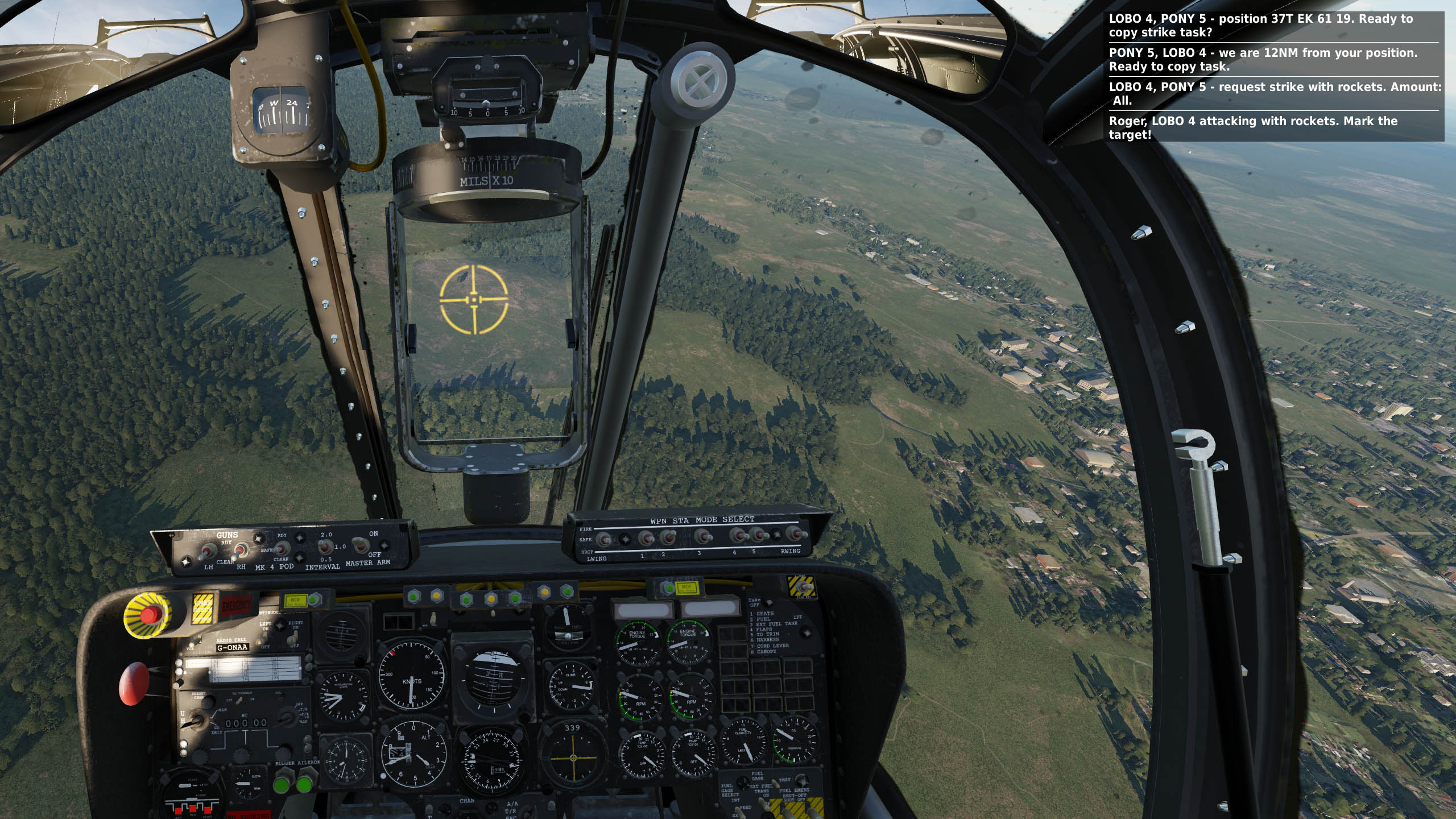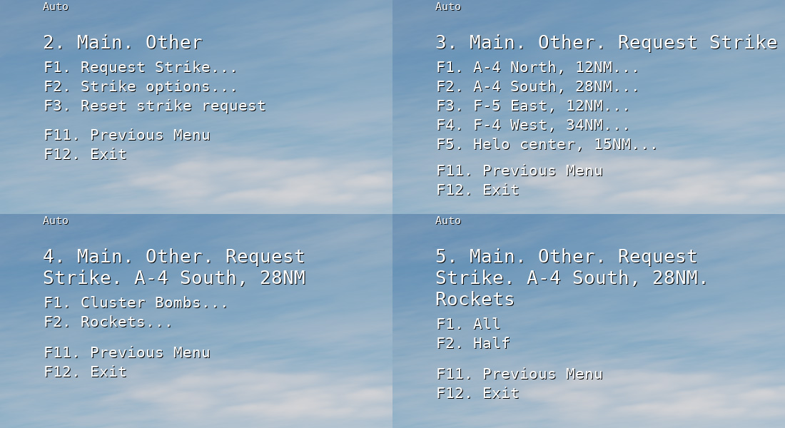The player can fly around, identify targets and request an air strike from one of five availabe striker groups, to engage the target.