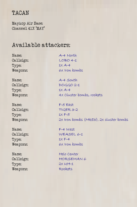 Moreover the manual covers basics like cold start, radio handling, creating own waypoints using TACAN offsets, INS alignment and creating INS waypoints.