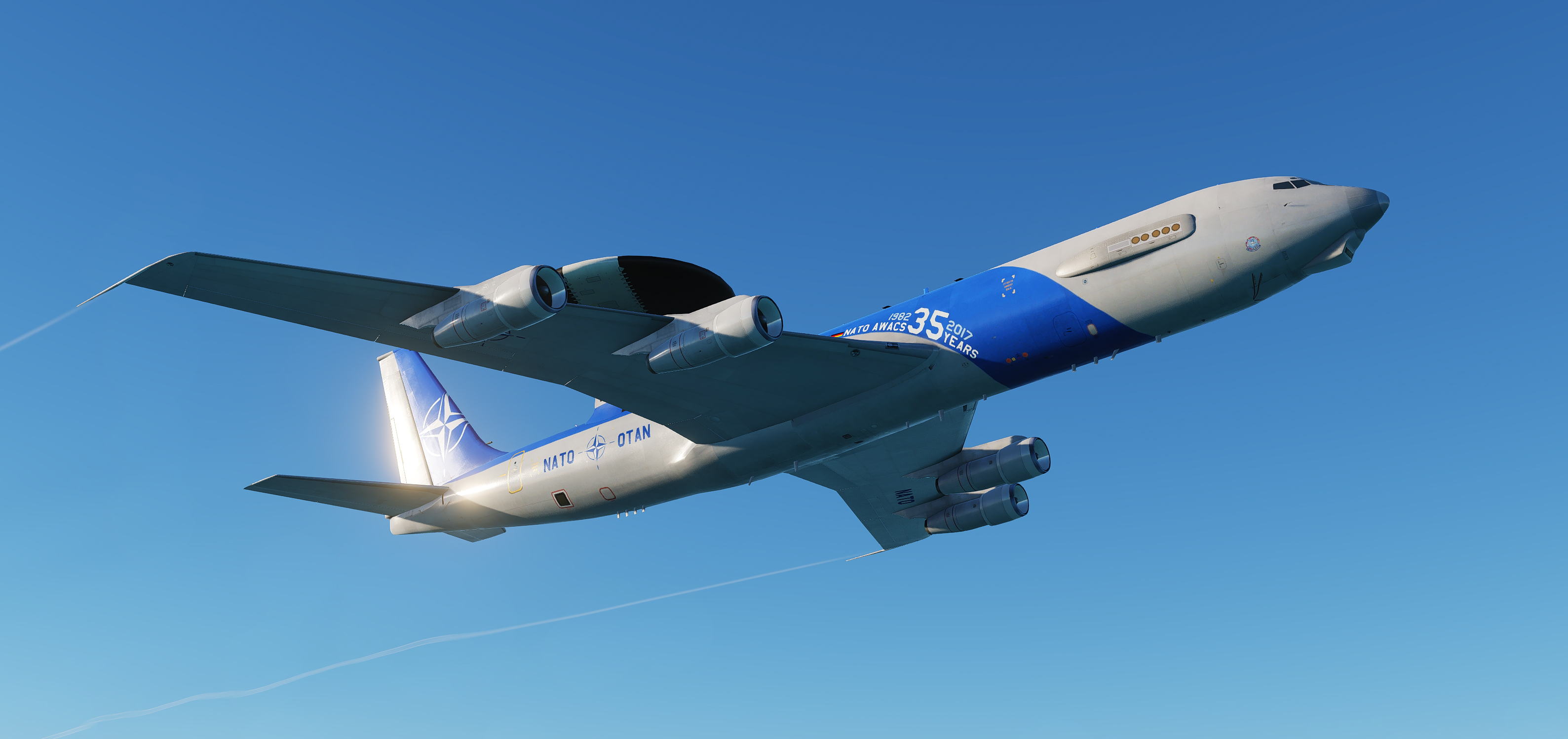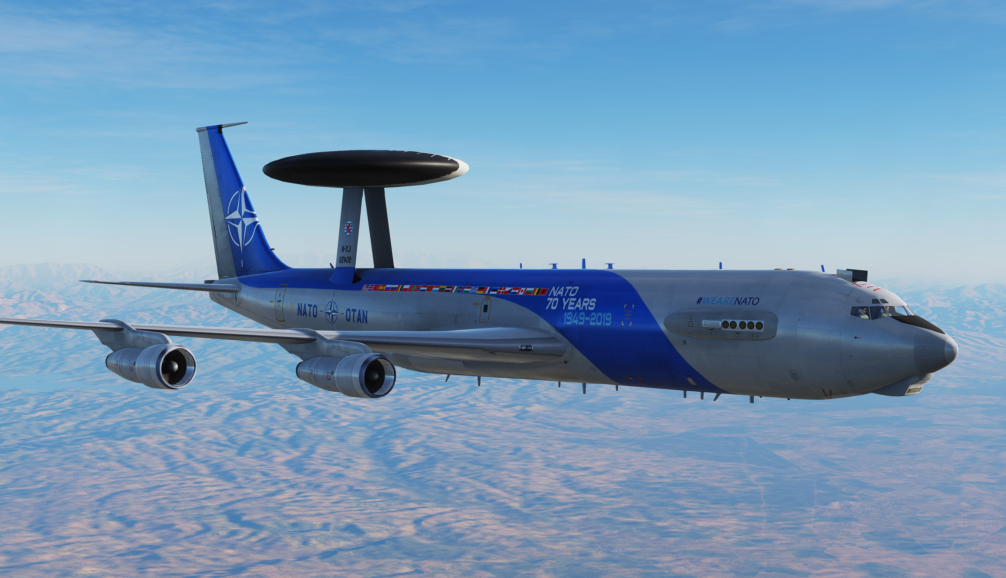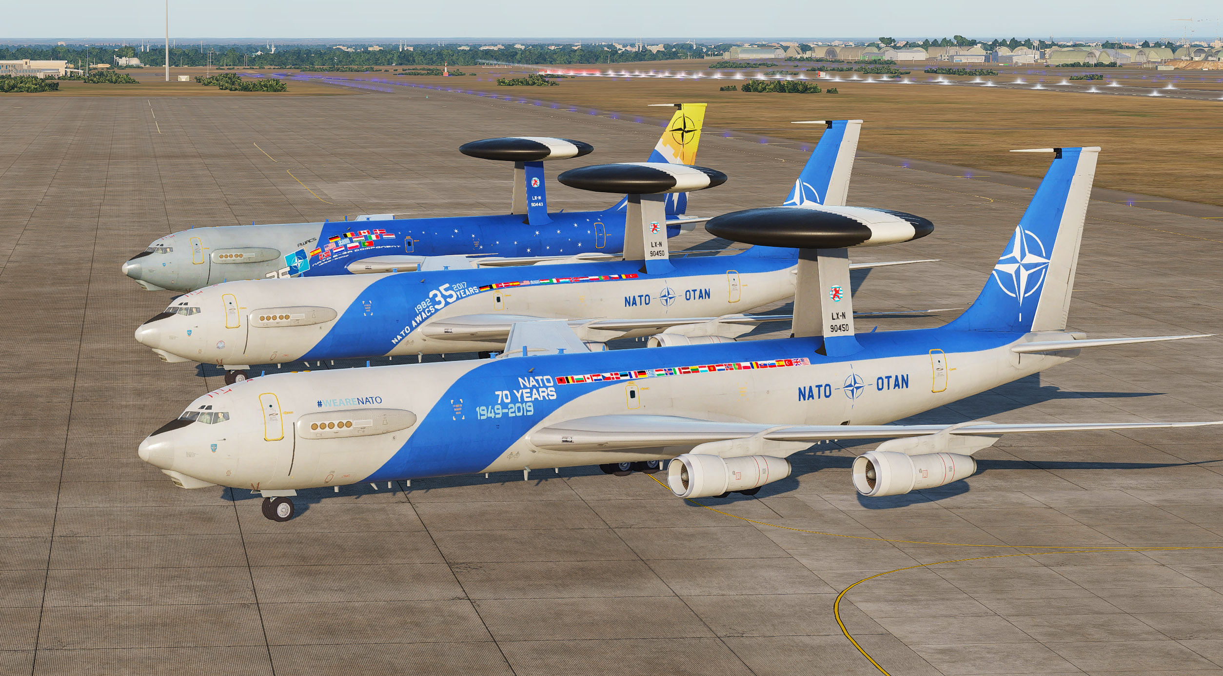 5 NATO skins on the detailed E-3A template. 35 years NATO AWACS and 70 years NATO liveries added. Updated 30/11/22