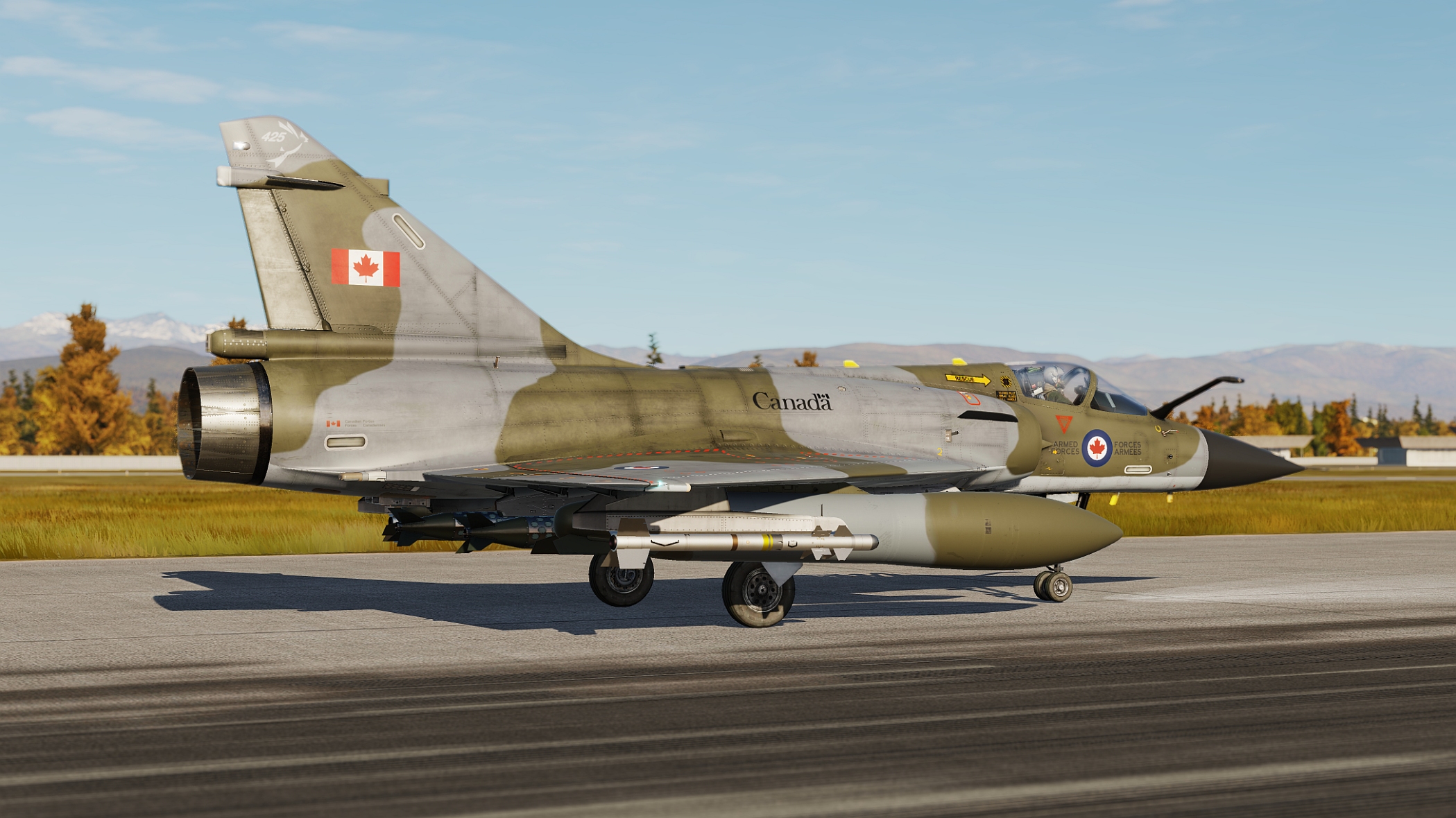 Fictional rendition of an RCAF Livery for the Mirage 2000. Complete with tanks, PBR files, new normals, pilot helmet and patches.