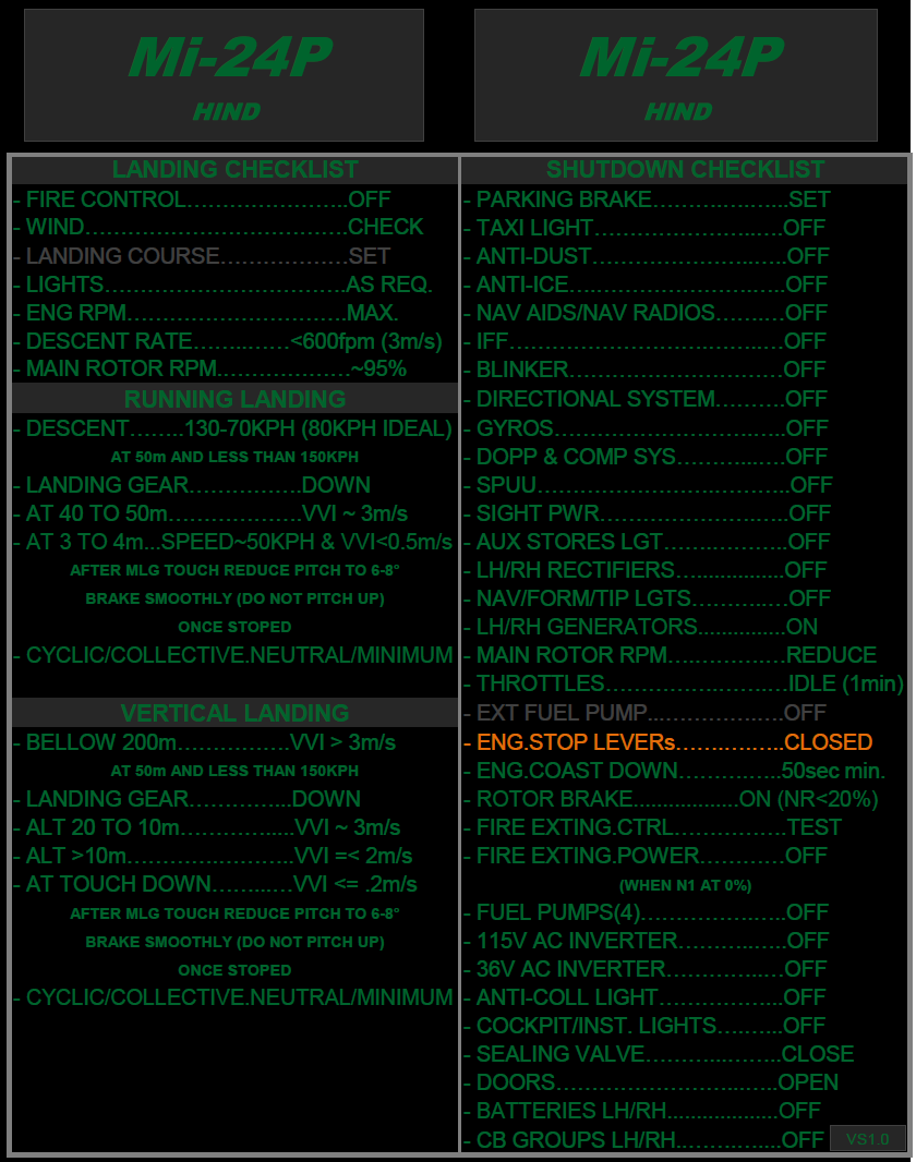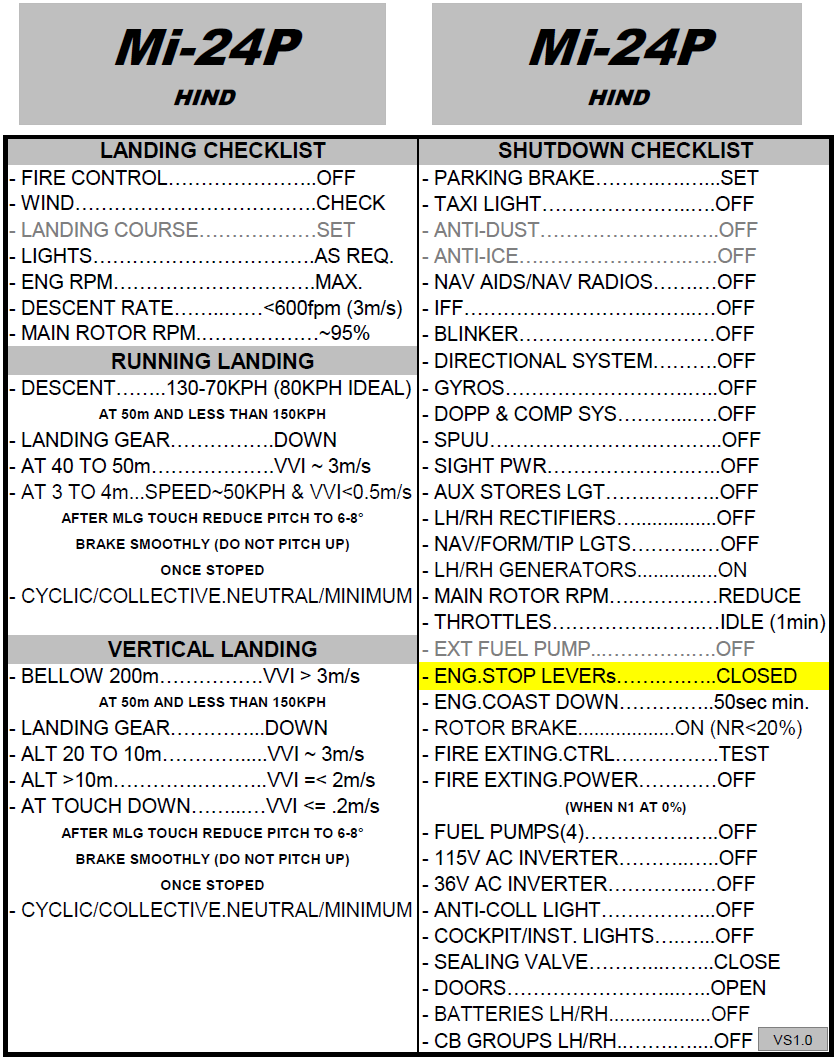 Mi-24P Quick Checklists (Day and Night Ops). (Update vs 1.0)
