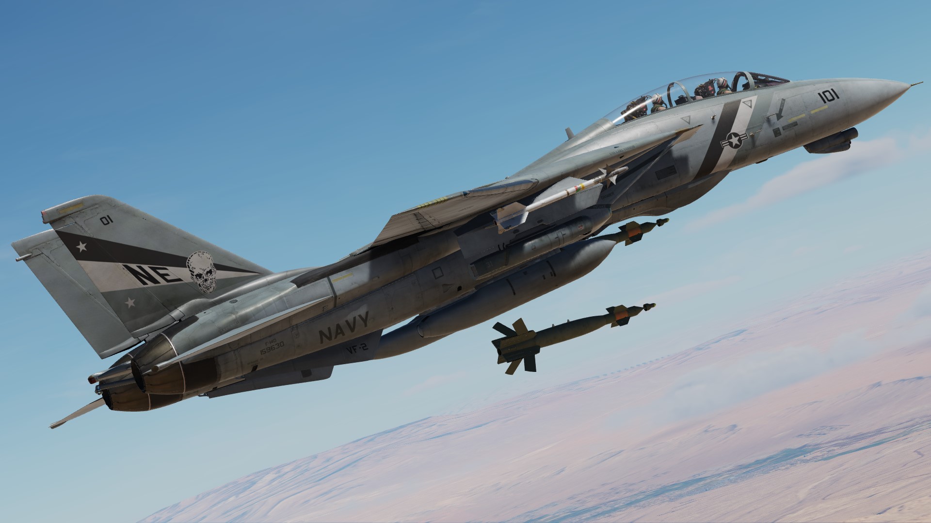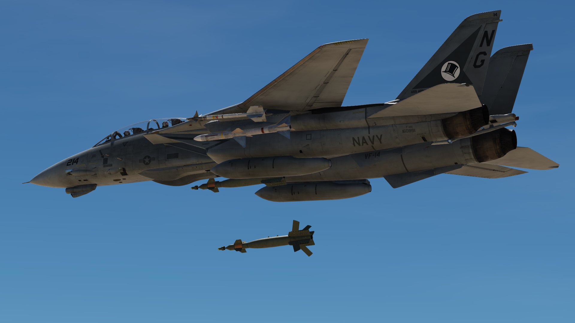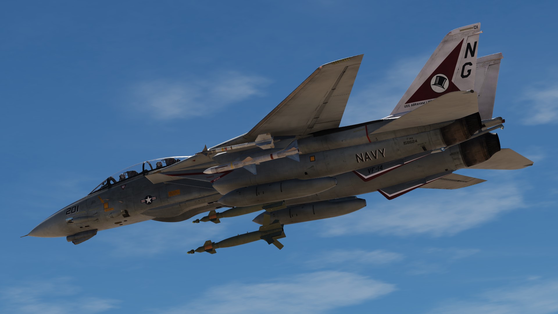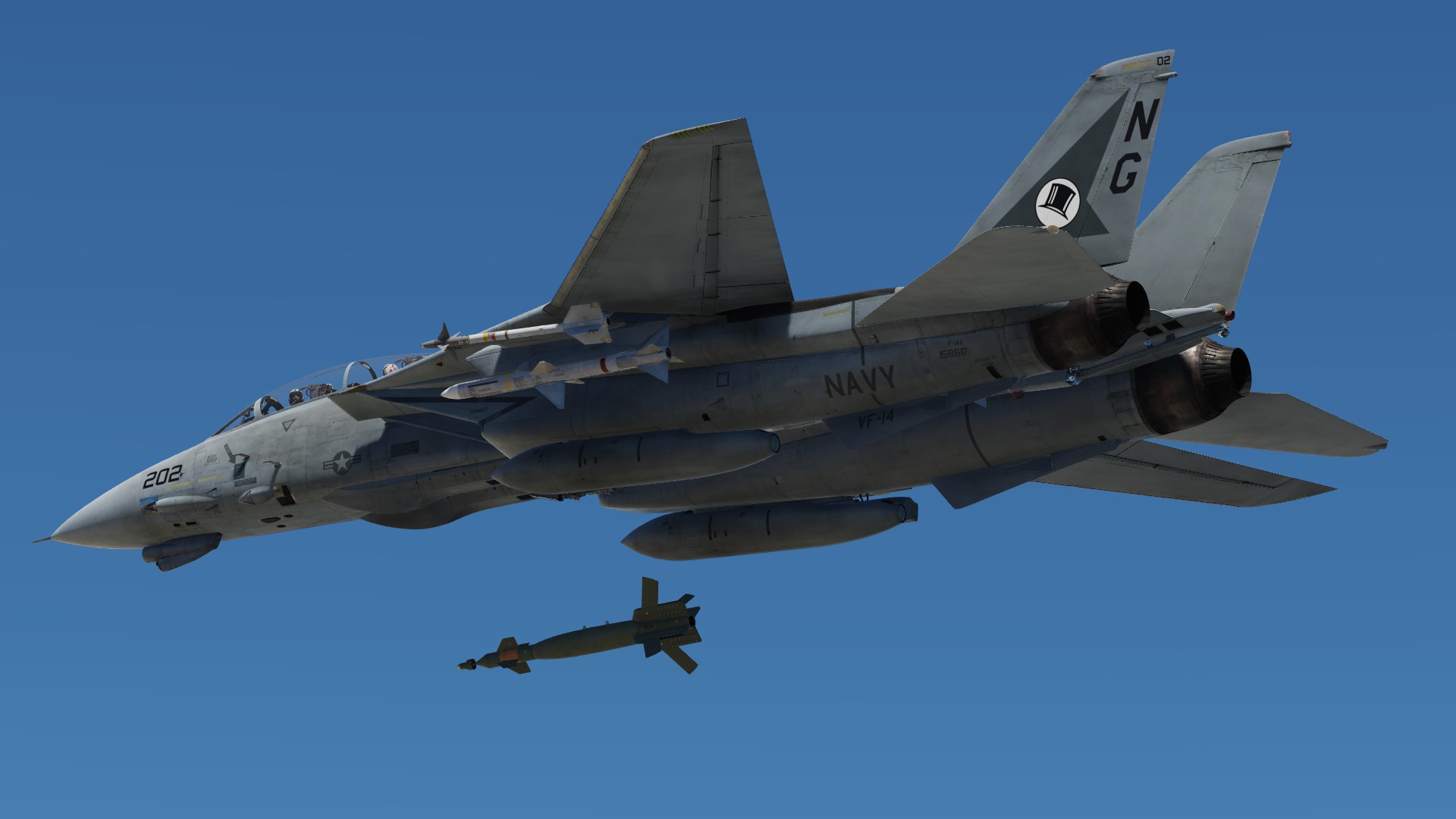 The paint scheme of the F-14D is reproduced on the F-14B.