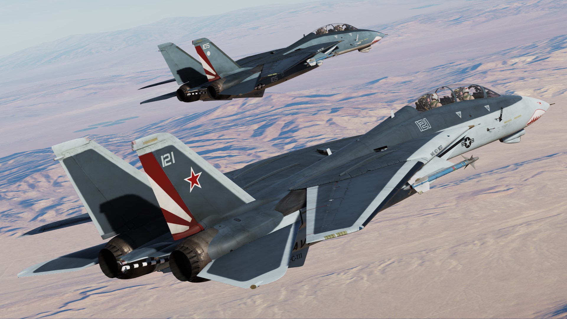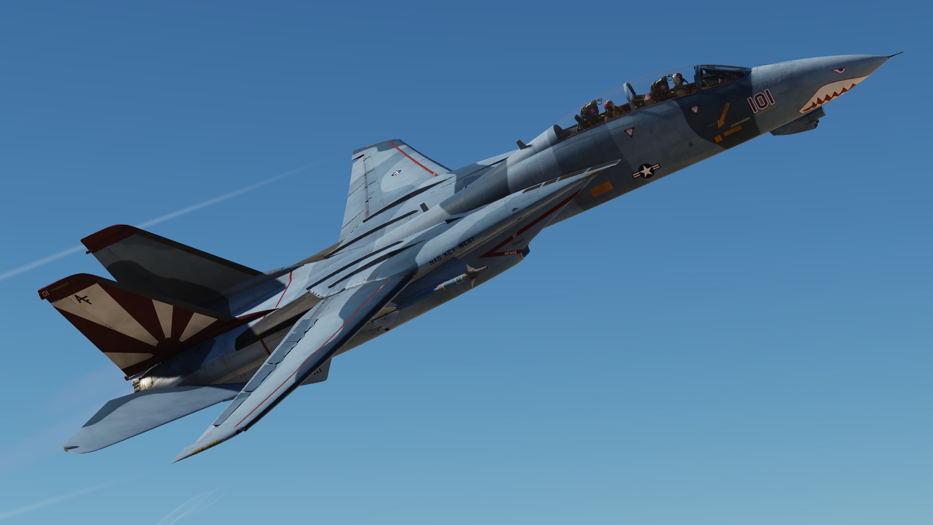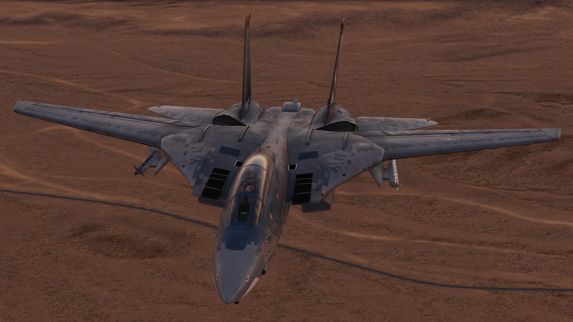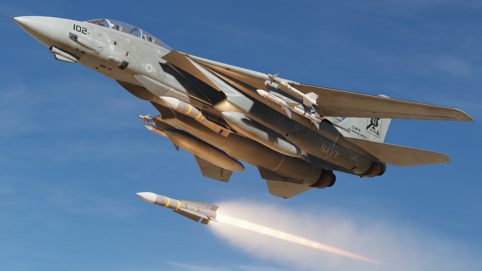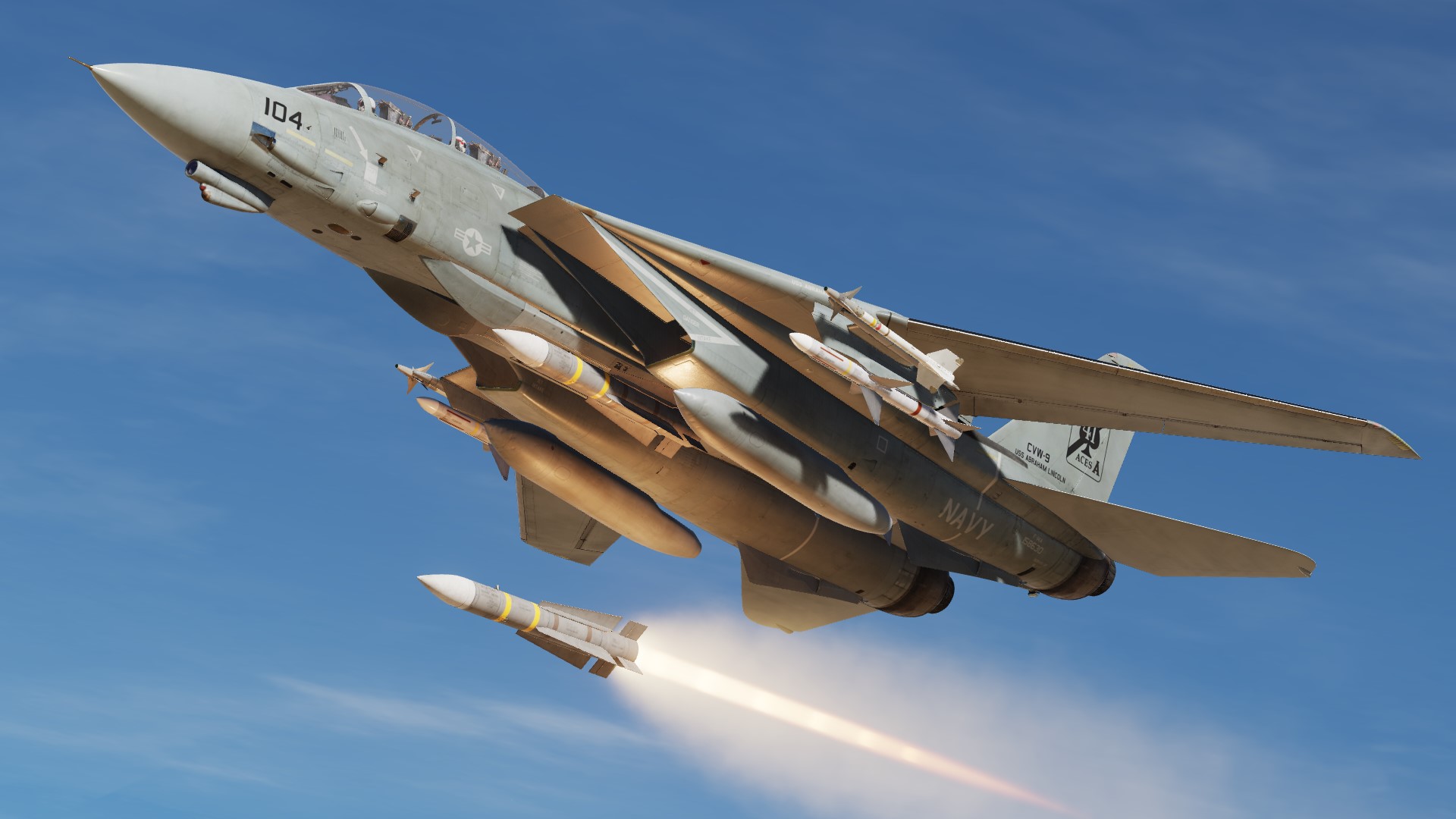The paint scheme of the F-14D is reproduced on the F-14B.