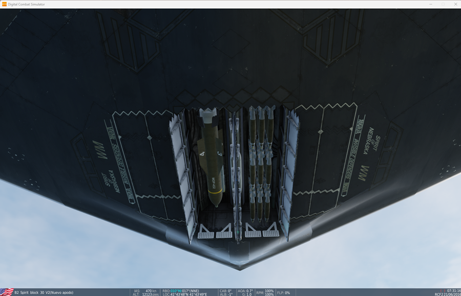 This is the new B2 Spirit Block 30 update by Fercho 1-1(july,5,2025), added ADI on mfd, Master Caution Indicator, Locked Main Indicator, Detected by Aircraft Main Indicator, and some other modifications and additions such as functional visual engines, new weapons and weapon configurations, (working on a ground-following missile for more immersion and realism but it's really hard to figure out how the code works in DCS. Applying the logic doesn't work as I expected), anyway I hope you like it and have as much fun as I did.