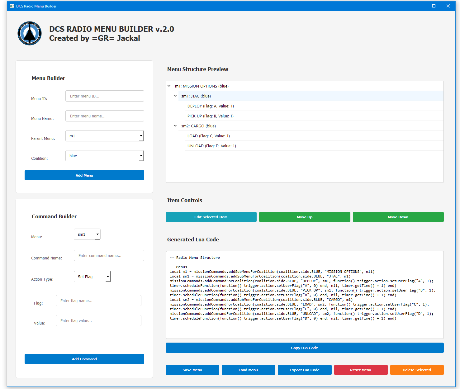 Create Radio Menus for your DCS missions without having to code in Lua or to get into complicated triggers in the Mission Editor.