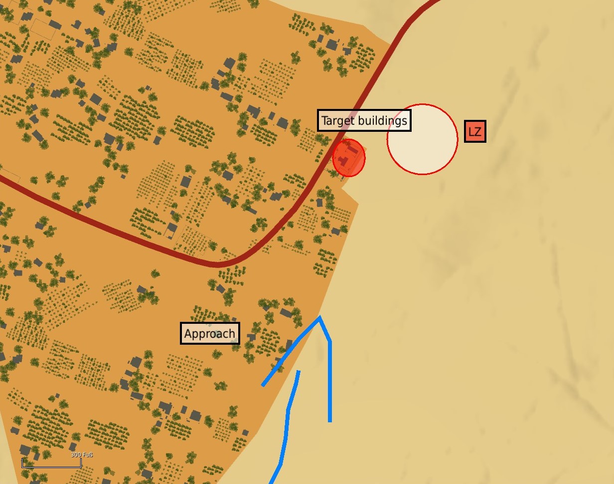 Your mission is to deploy a group of special forces operators at the eastern outskirts of Tyre. The SF are tasked to attack and destroy two buildings there (see pictures in your briefing files). Why is nothing you need to be concerned about.