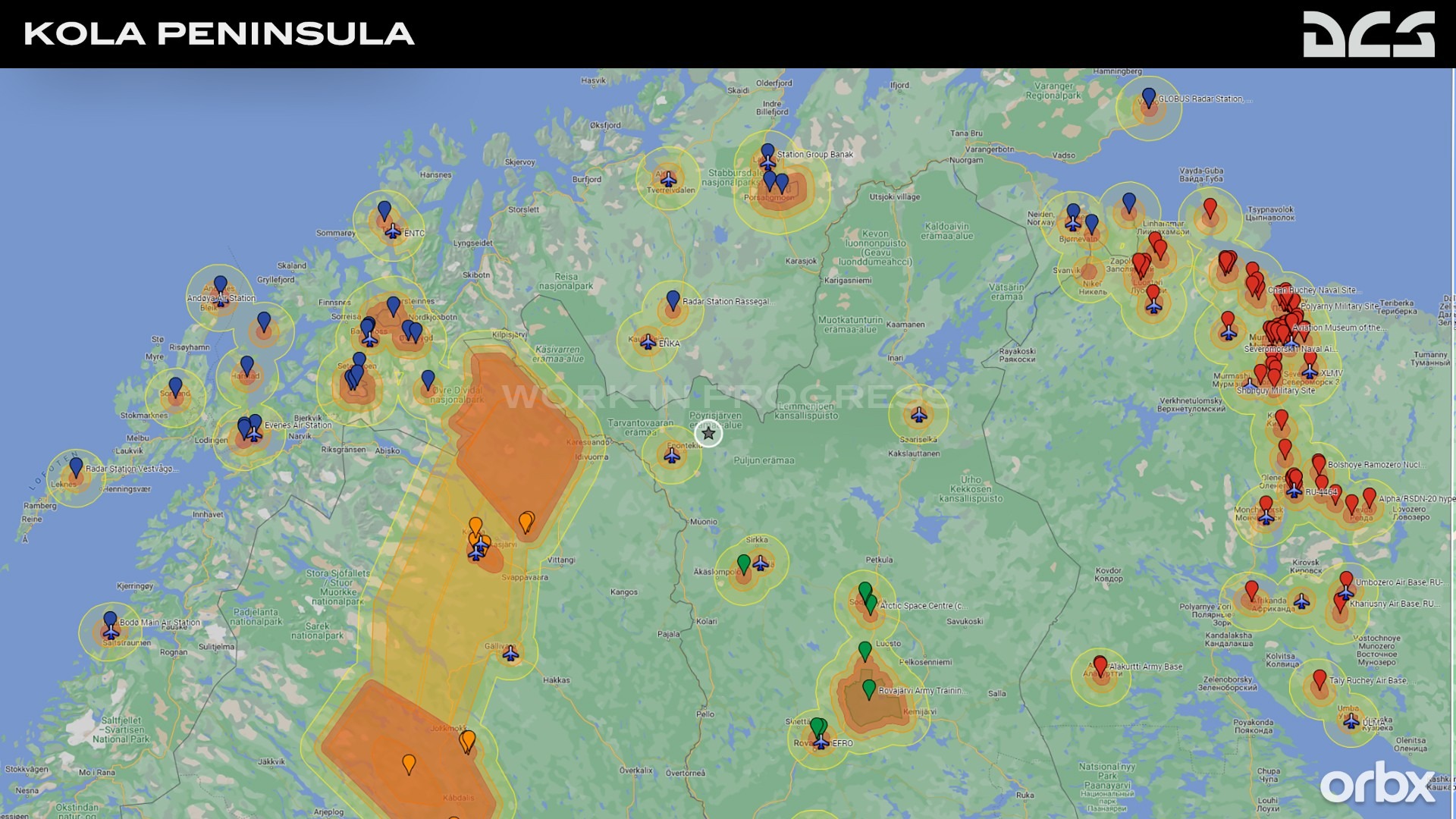 详细的空军基地,包括在最初发布的科拉地图中,将有博德、巴杜福斯、埃文斯、罗瓦涅米、吕勒奥、维斯德尔、蒙切戈尔斯克、欧林亚、塞维罗莫尔斯克-1和-3等。它们将按照其当代配置进行建模。除了机场之外,许多重要的陆军和海军基地、试验靶场、雷达和储存场所以及整个公路和铁路网络也将被添加进来。