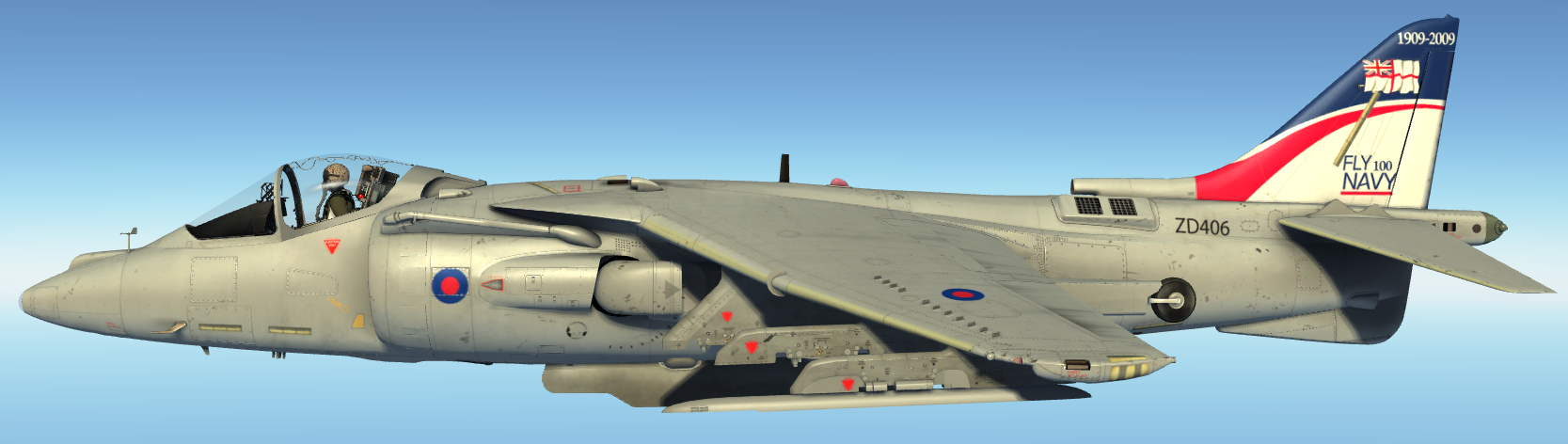 Two Royal Navy anniversary paint shemes; Gr.9 ZD406 and Sea Harrier ZH809 (a.k.a. The Admiral's Barge).