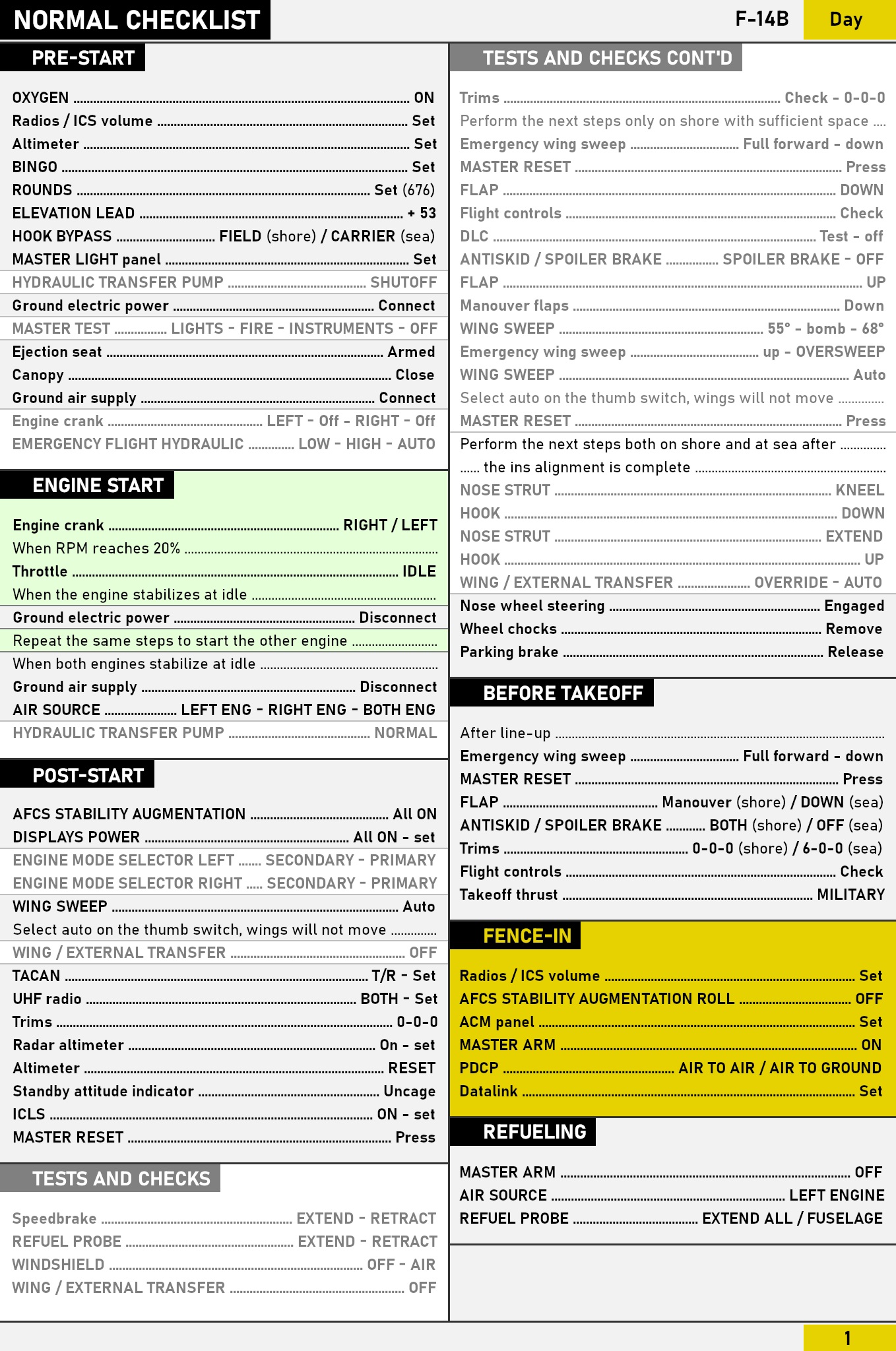 F-14A and F-14B Checklists
