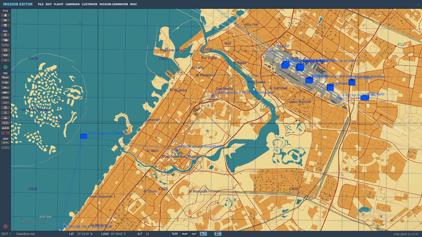 This is the obstacle course I set up in the Persian Gulf Map just for fun and to fly different aircraft through.  It's not a complicated map and doesn't have a lot of "finish" but I had a request to share it.  You can change the aircraft to suit what you own.