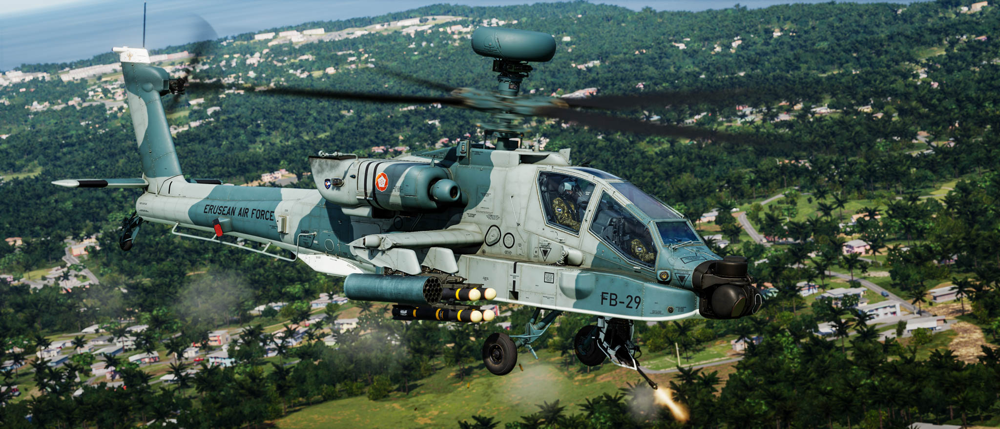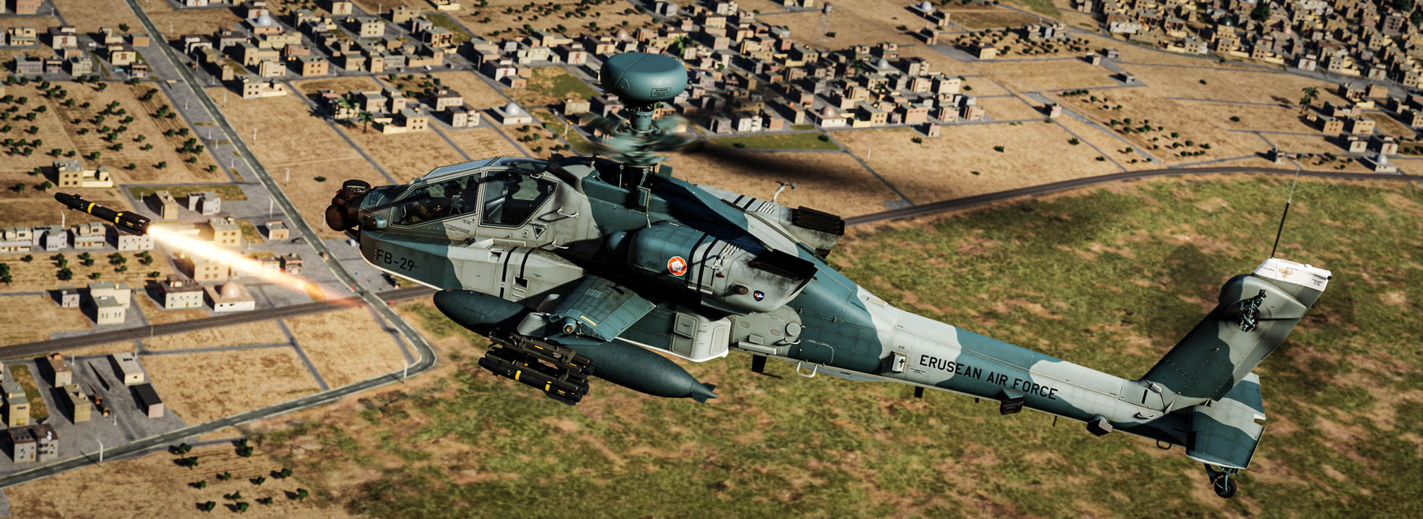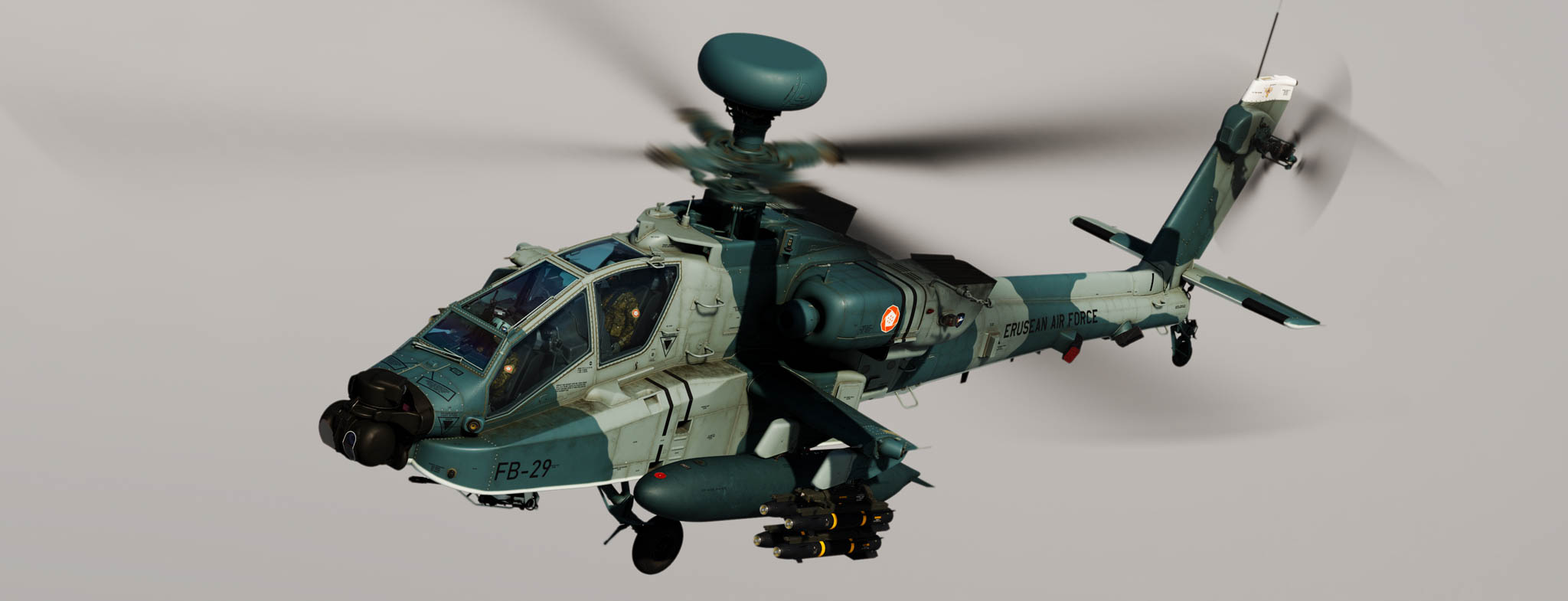 With a lineage tracing back to the old horsemounted cavalry of the Eursean Royal Army, the 15th Escadrille Chassur, known as “Ruler”, proved worthy of their name in Battlefield Dominance in their AH-64 gunships. Making the at the time controversial transition from mechanized to rotary wing combat in the early 1960’s, Ruler would begin to fly the AH-1 ‘Cobra’, an Osean designed purpose built attack helicopter based on the ubiquitous UH-1B 'Iroquois’ design of utility helicopter. With the speed and ability to bring overwhelming fire on positions, Ruler was instrumental in Erusean expansion until the unit was retired with the regime change brought on by the Federal Republic. Following the reinstitution of the Monarchy in the late 2000’s, Ruler was once again activated, now flying the more advanced and capable AH-64 ‘Apache’, seeing service around the Capital of Farbanti during the 2019 Lighthouse War against Osea.