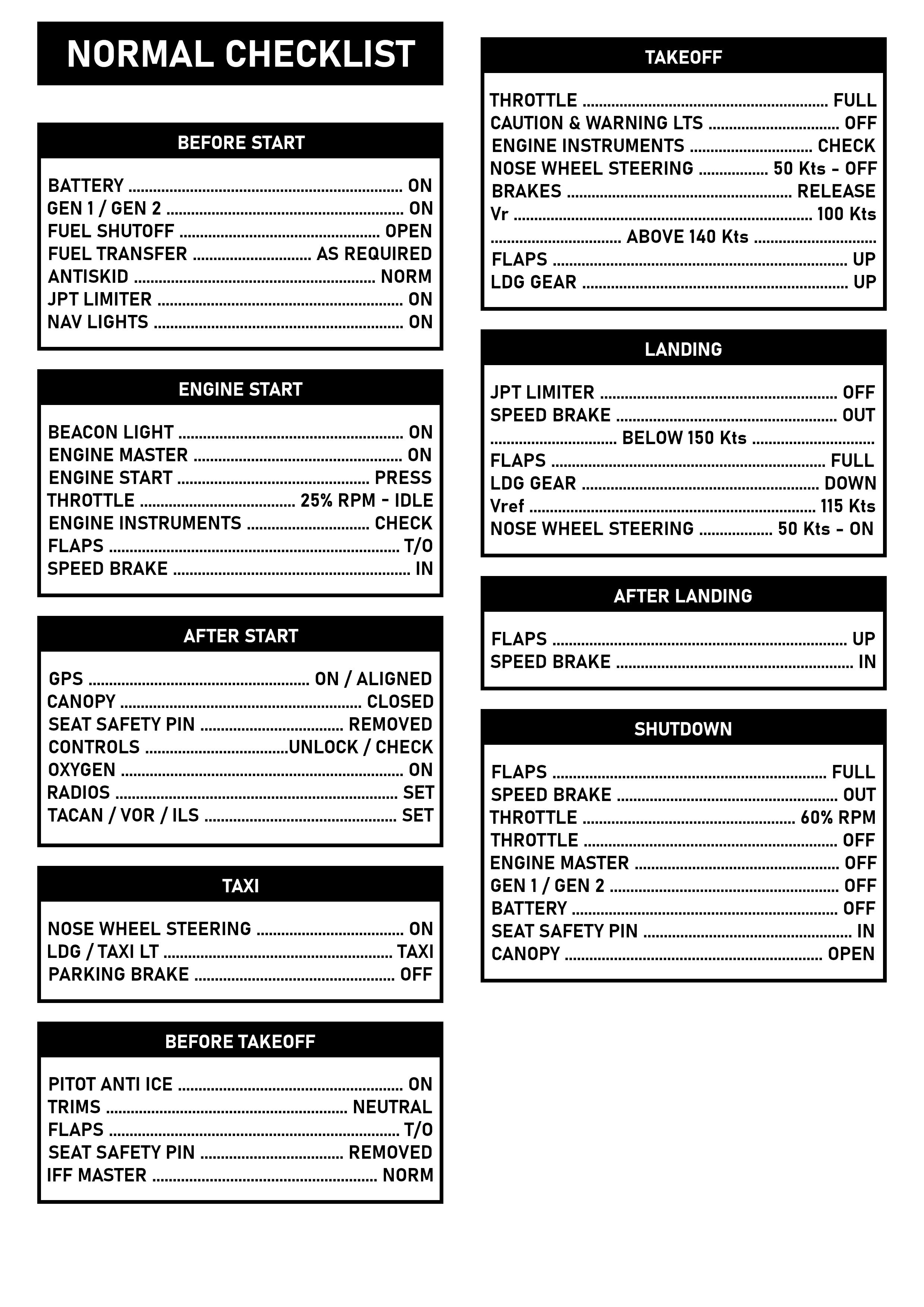 F-5E-3 Checklist - Normal and Combat