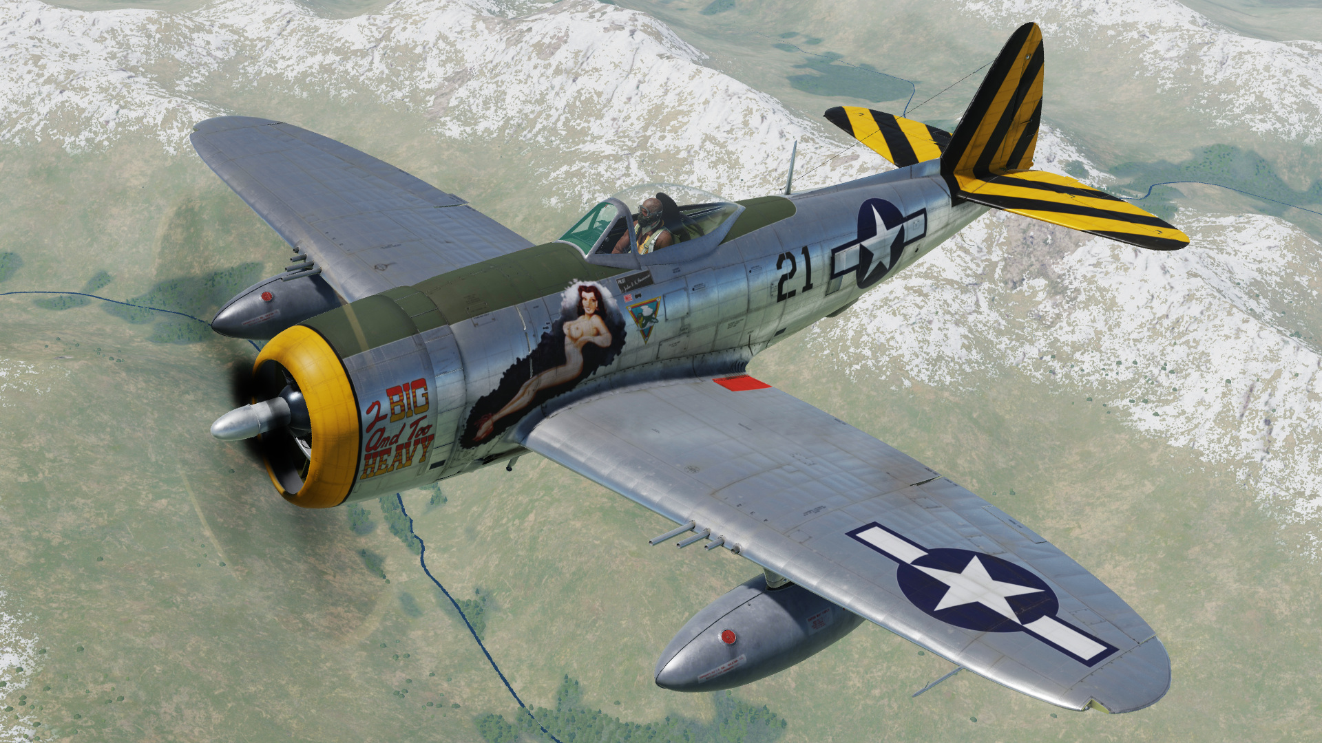 "2 Big and too Heavy" was a P-47N of the 318th Fighter Group, 333rd Fighter Squadron, 7th Air Force which fought in the Pacific theatre of operations.
