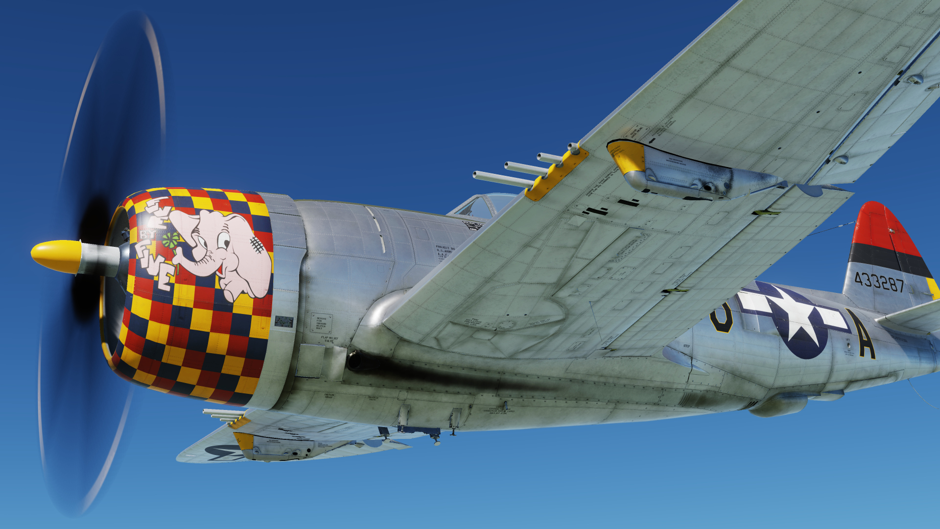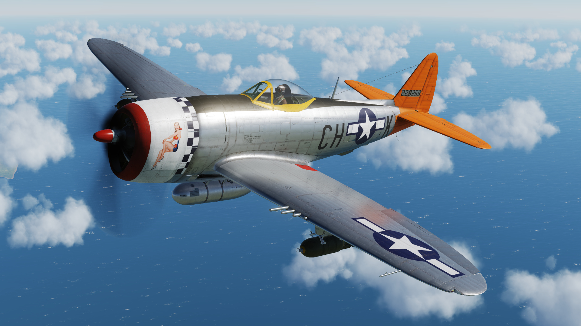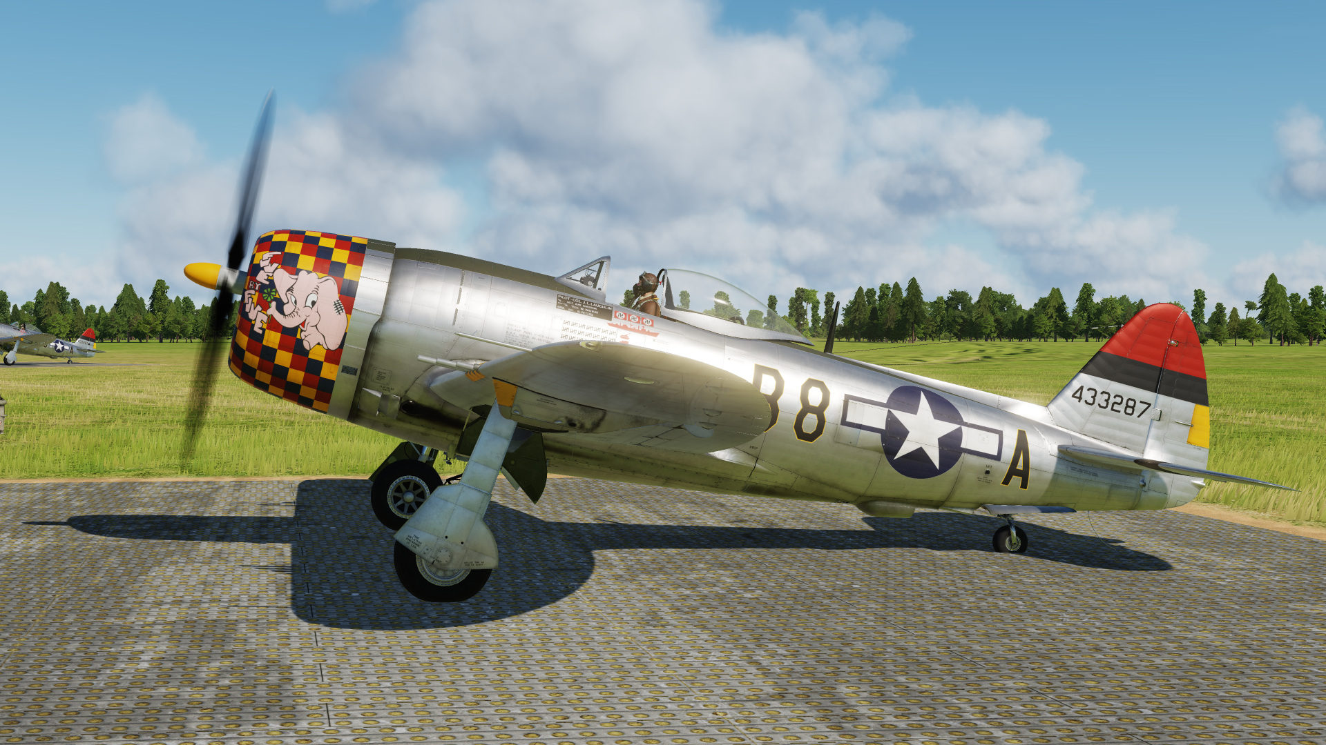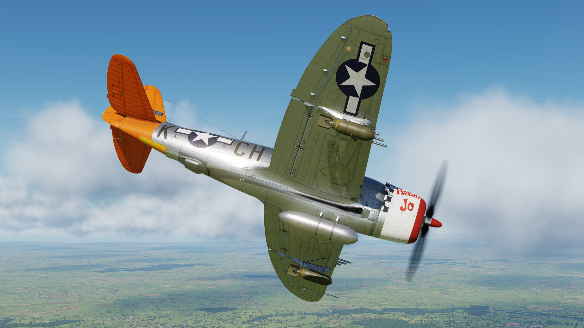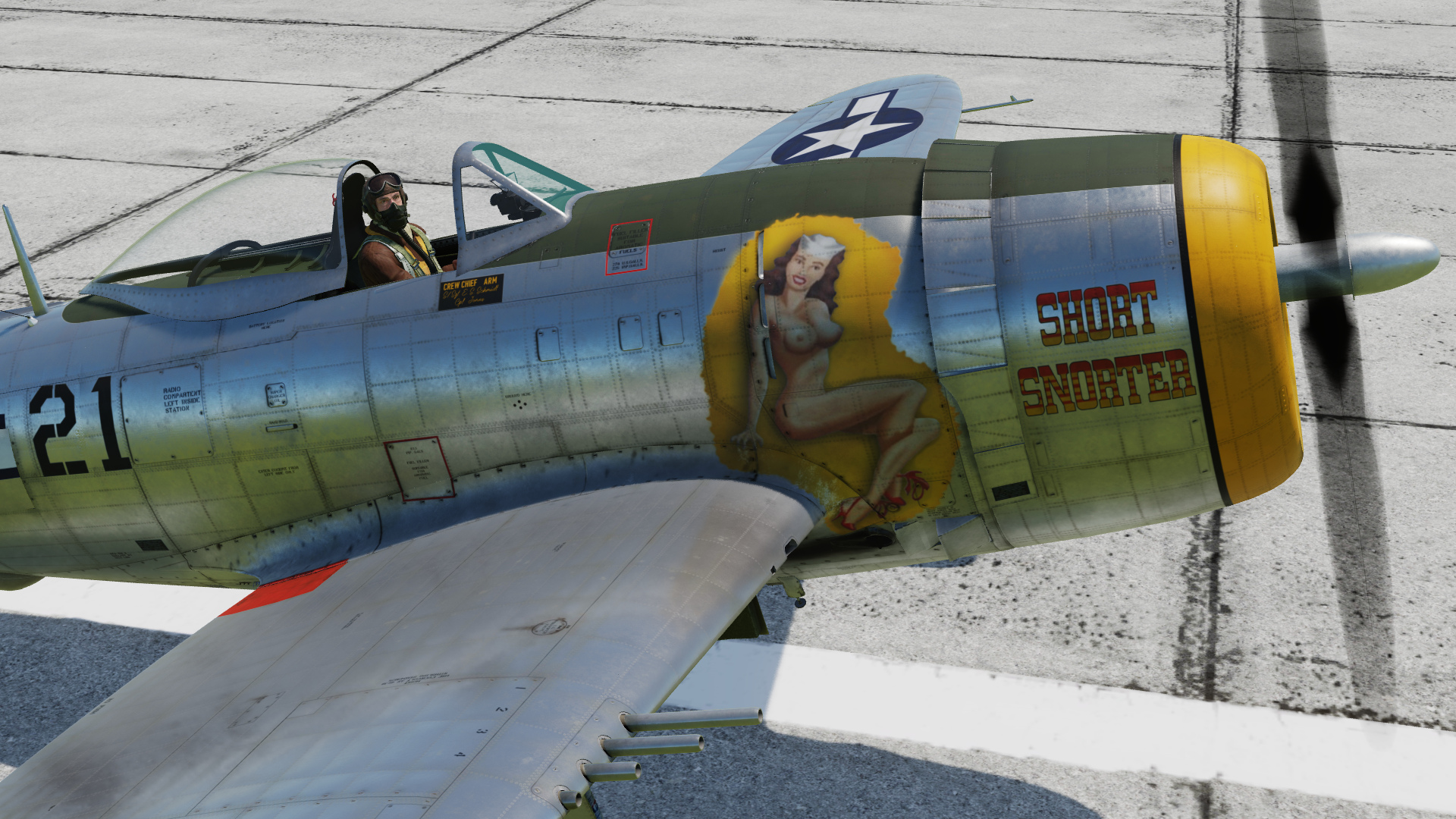 It carries the code of the 365th Fighter Squadron which was "CH". The sim will then apply the individual code letter/serial number from its default settings to the rear fuselage and tail.