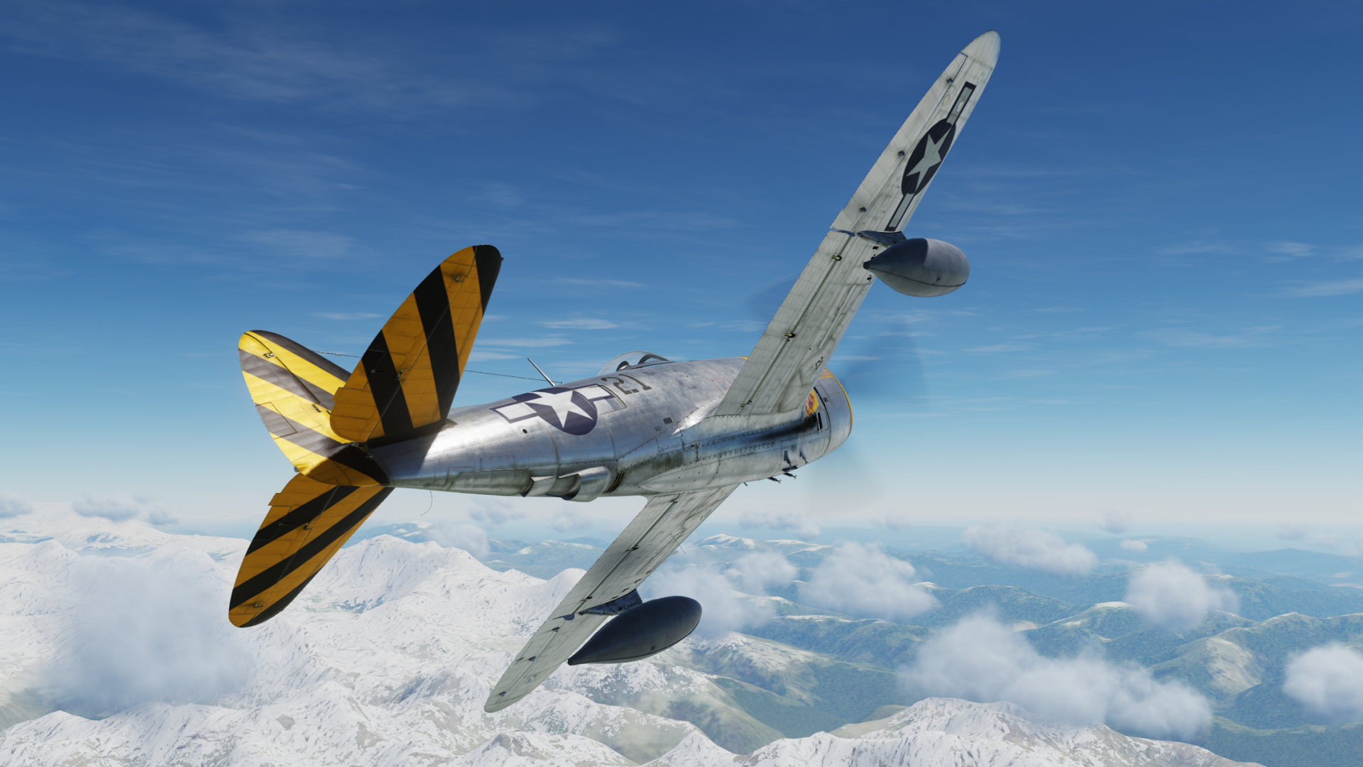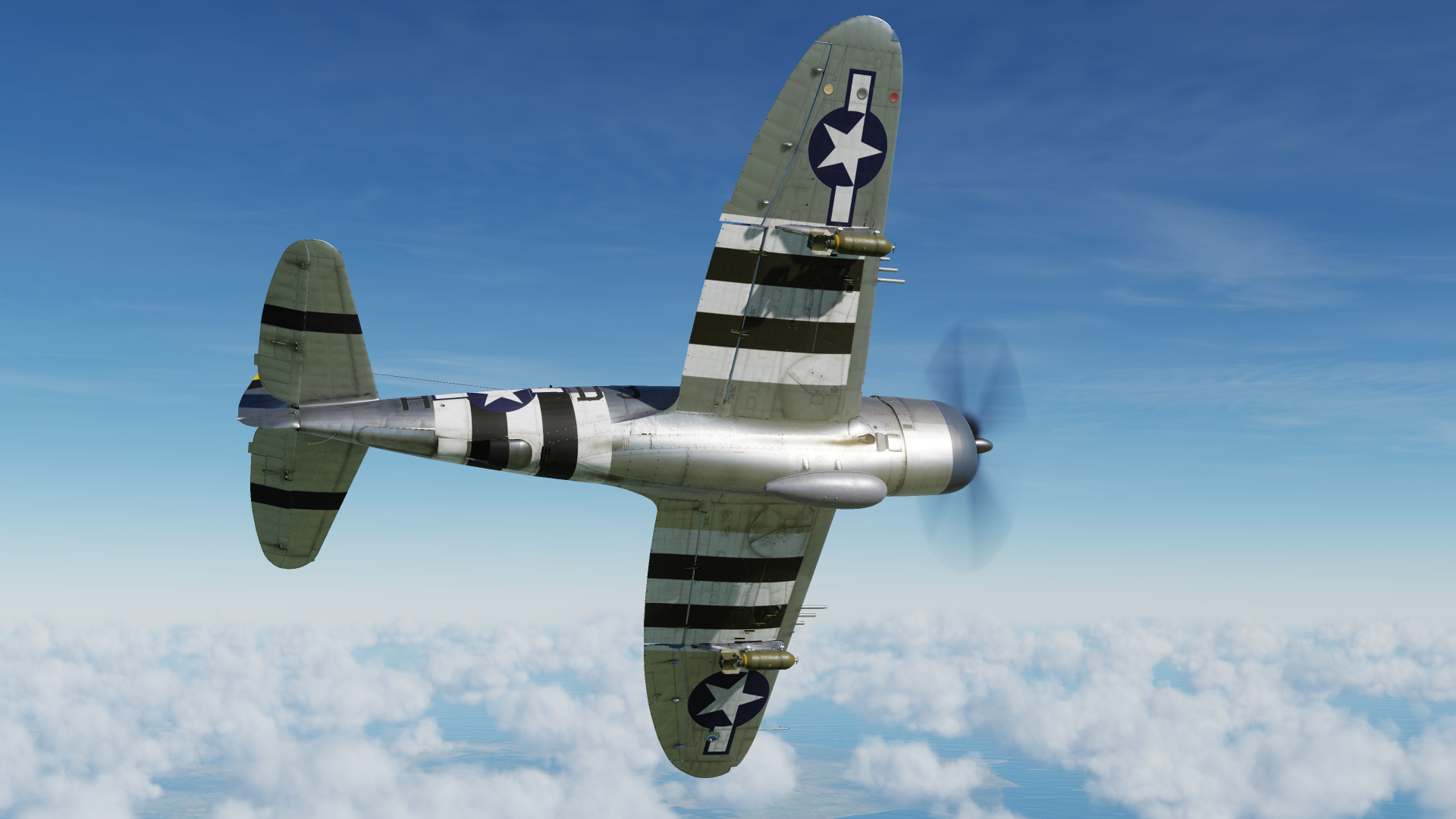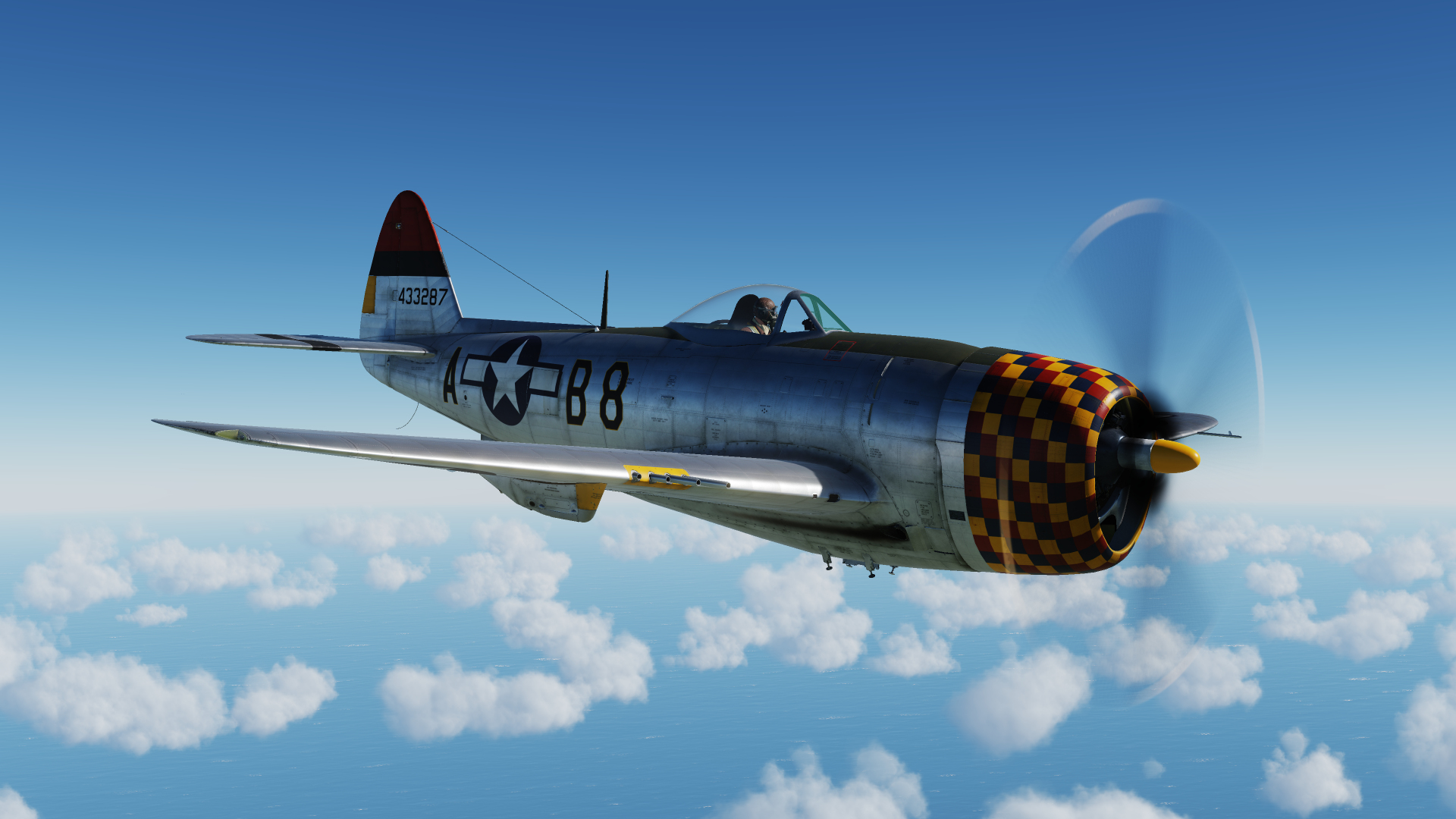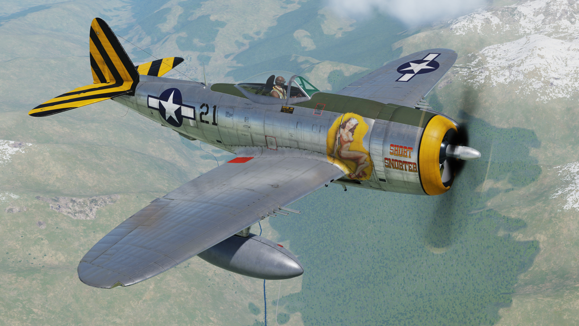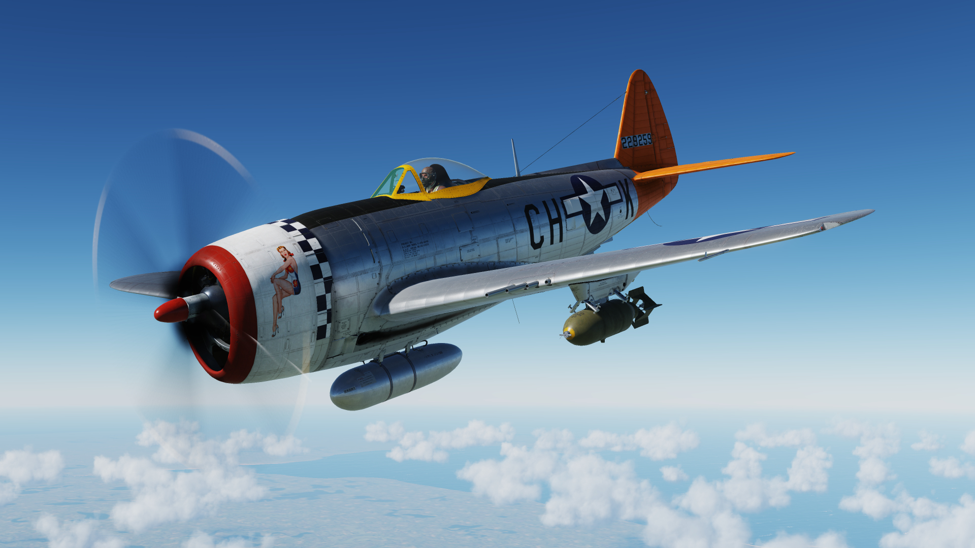 It carries the code of the 365th Fighter Squadron which was "CH". The sim will then apply the individual code letter/serial number from its default settings to the rear fuselage and tail.