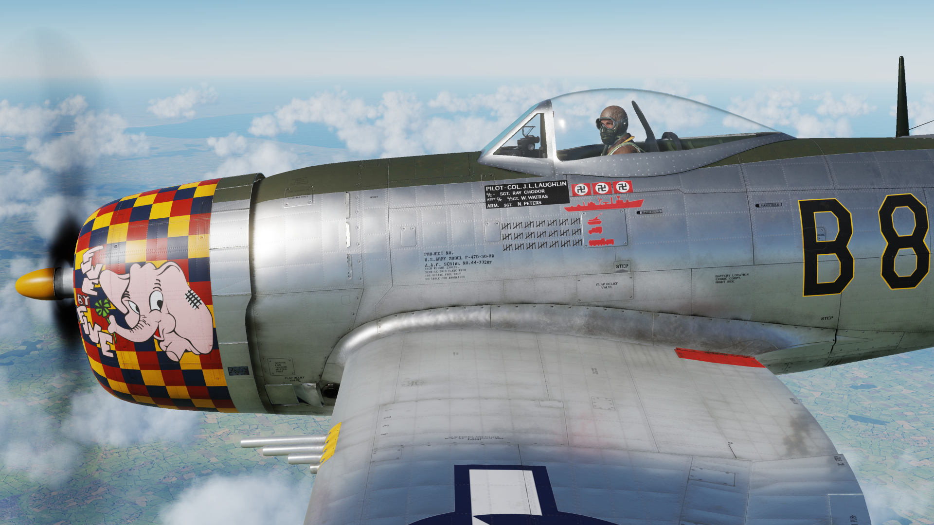 "Five by Five" was a P-47D-30-RA flown by Colonel Joe Laughlin, C.O. of the 362nd Fighter Group, 9th Air Force from August 1944 to the end of the war.