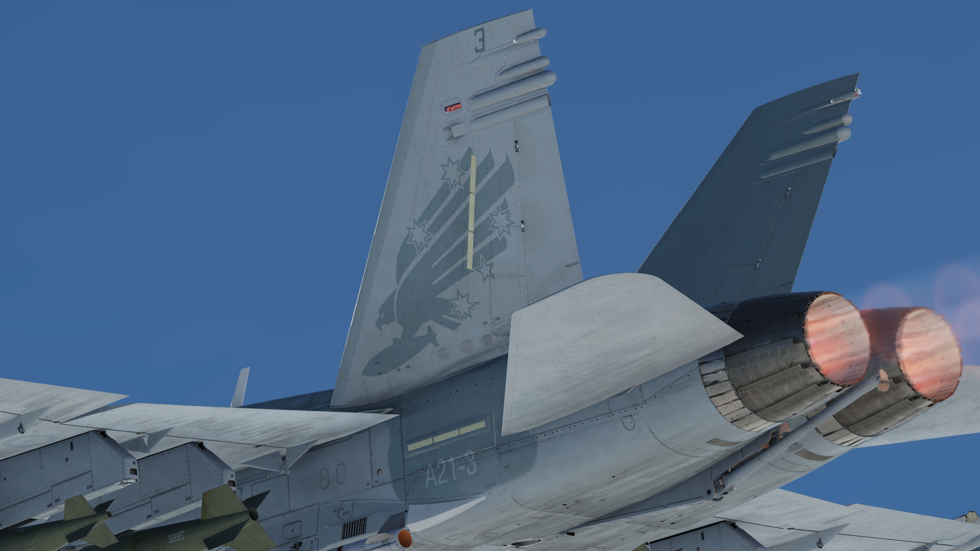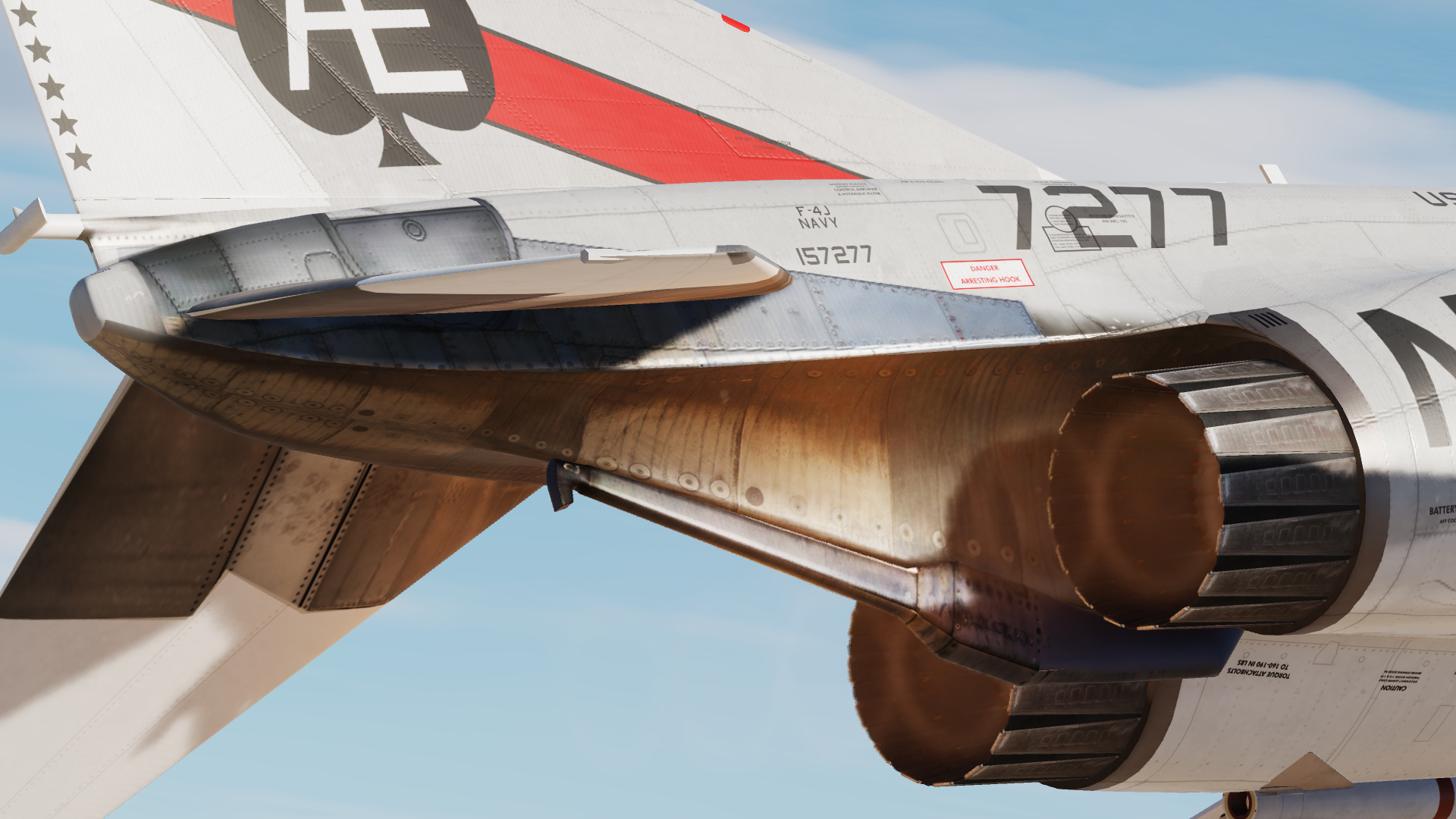 It has: Correct markings and names for both pilot and RIO as it was on the original bird, reworked base textures that now include some missing heat-resistant panels, proper but basic roughmets that tie everything together. It will be improved over time.