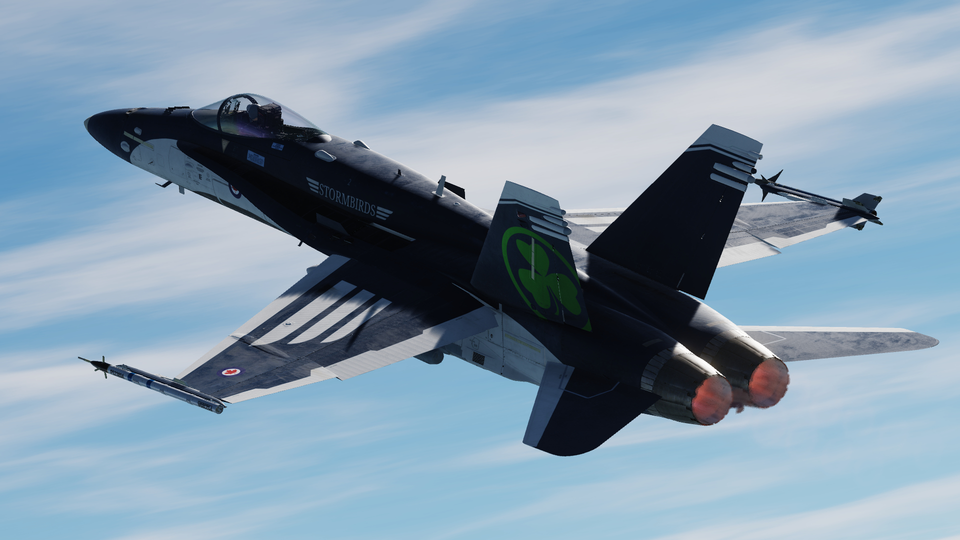 An airshow-like livery for the F/A-18C themed around Stormbirds! This livery was initially made as a gift for Shamrock, who runs Stormbirds, to celebrate an interview I had just had with him for my own website, Skyward Flight Media. He kindly asked me to make this livery public, so here it is.