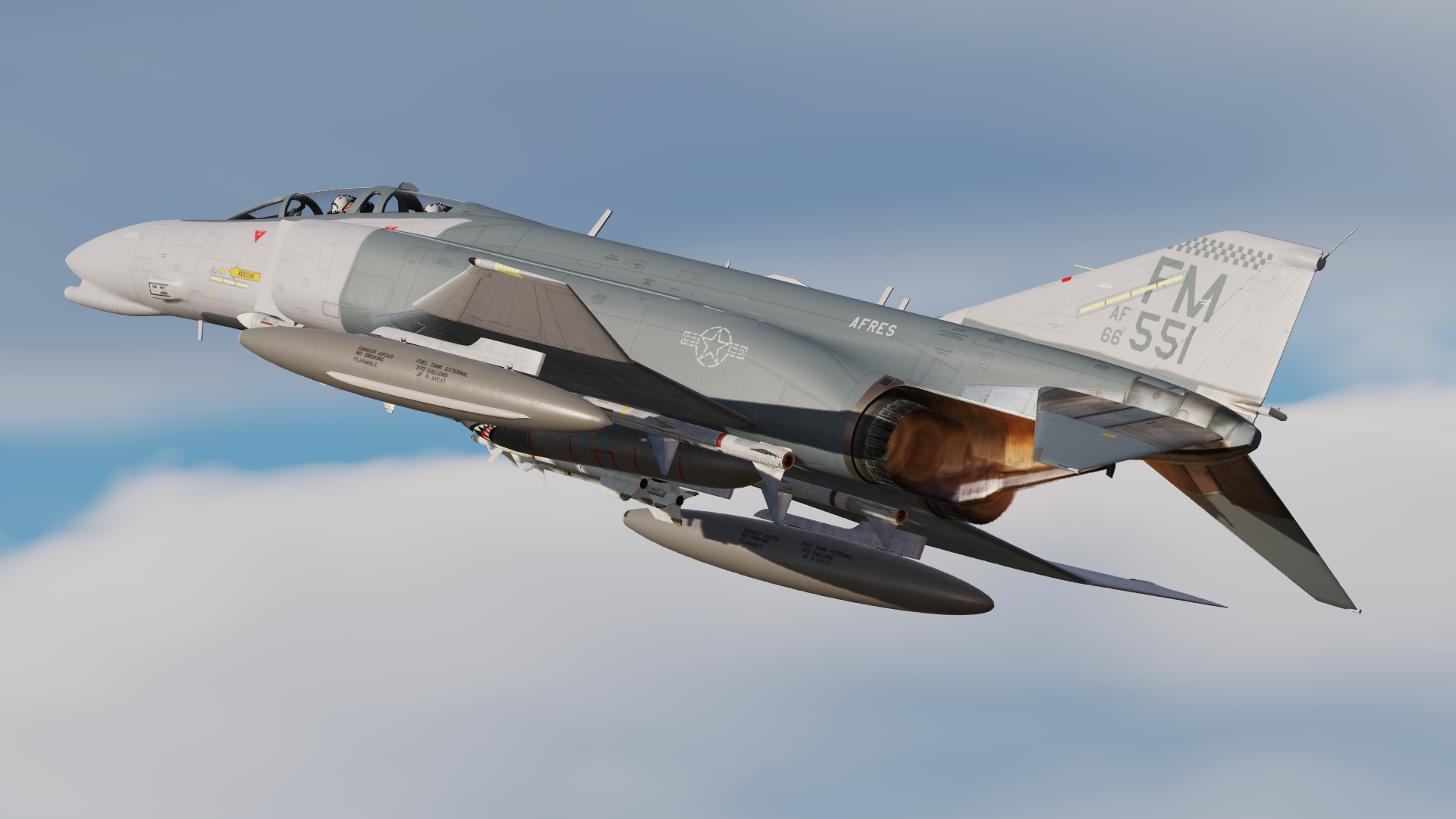 UPDATE: FIXED AN ISSUE THAT CAUSED THE FORMATION LIGHTS TO NOT WORK. A replica of F-4D Phantom II 66-7750 from the 465th Tactical Fighter Squadron/507th Tactical Fighter Group based out of Tinker AFB, Oklahoma, circa 1985. Made from some reference images and with only some very minor errors, it is an accurate recreation of this bird as it flew in 1985 for the Air Force Reserve with their gorgeous Euro 1 camouflage. It has: Correct markings, reworked base textures that now include some missing heat-resistant panels, proper but basic roughmets that tie everything together and even a custom USAF-accurate SUU-23 gun pod with its textures.