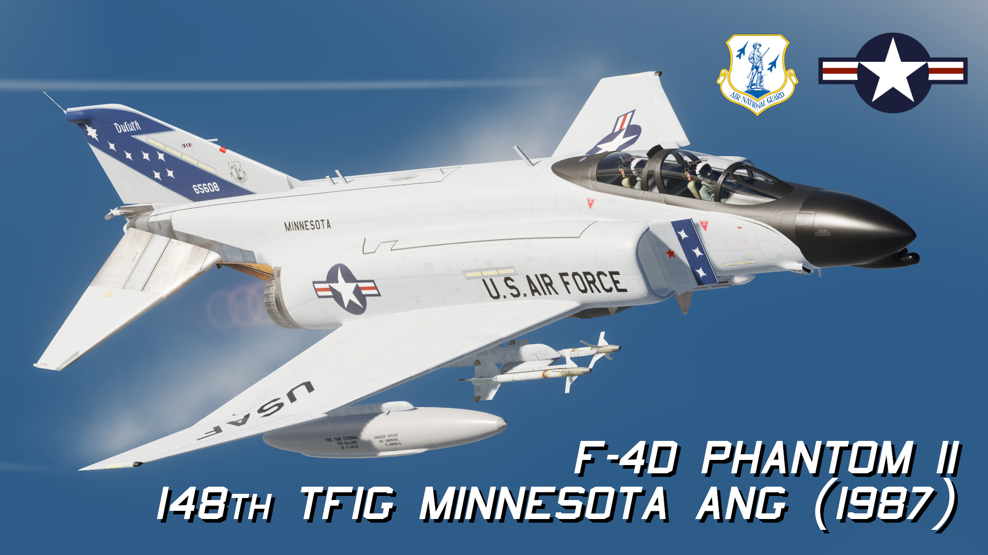 A semi-faithful recreation of Phantom 65-0608 of the 148th Fighter-Interceptor Group, Minnesota ANG, which was also downed a MiG-21 over North Vietnam in 12th September 1972. Serial 65608 wore this scheme for a few years before it got changed to a two-tone gray scheme, but this specific paint job is from around 1984-1987. This livery has simple custom roughmets, which bring this bird to life in a more believable way with better PBR reflections!