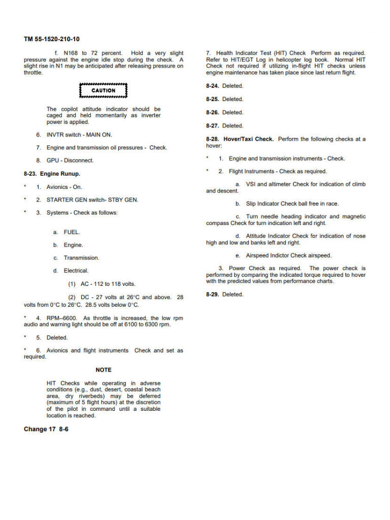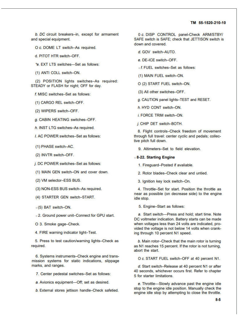 Engine Start UH-1H 3 page Kneeboard
