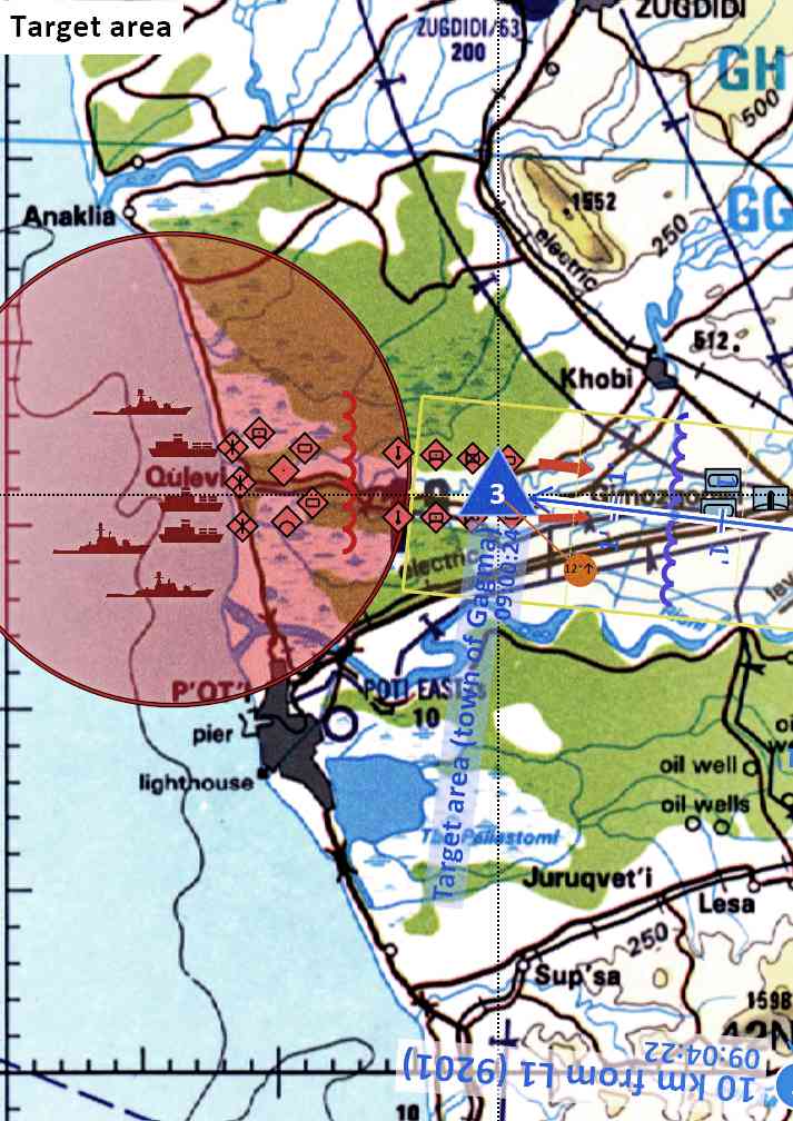 US, UK, Norwegian and Swedish air forces are operating from Senaki-Kolkhi and Kutaisi AB. Coalition ground forces are in the process of securing the city of Zugdidi. Meanwhile a small Georgian naval group is racing towards a Russian naval invasion force in order to sink it down before they unload their ground troops.