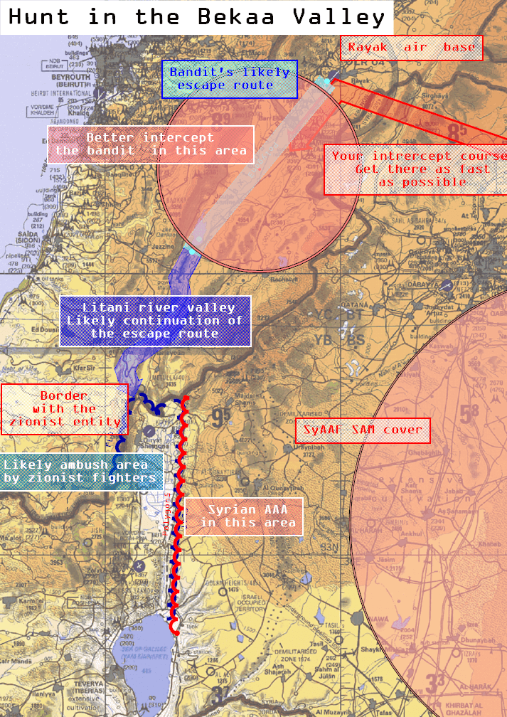 You’re a Syrian Arab Air Force (SyAAF) pilot on an early morning QRA watch from Al Dumayr air base. You are to take off immediately and head for the Bekaa Valley.