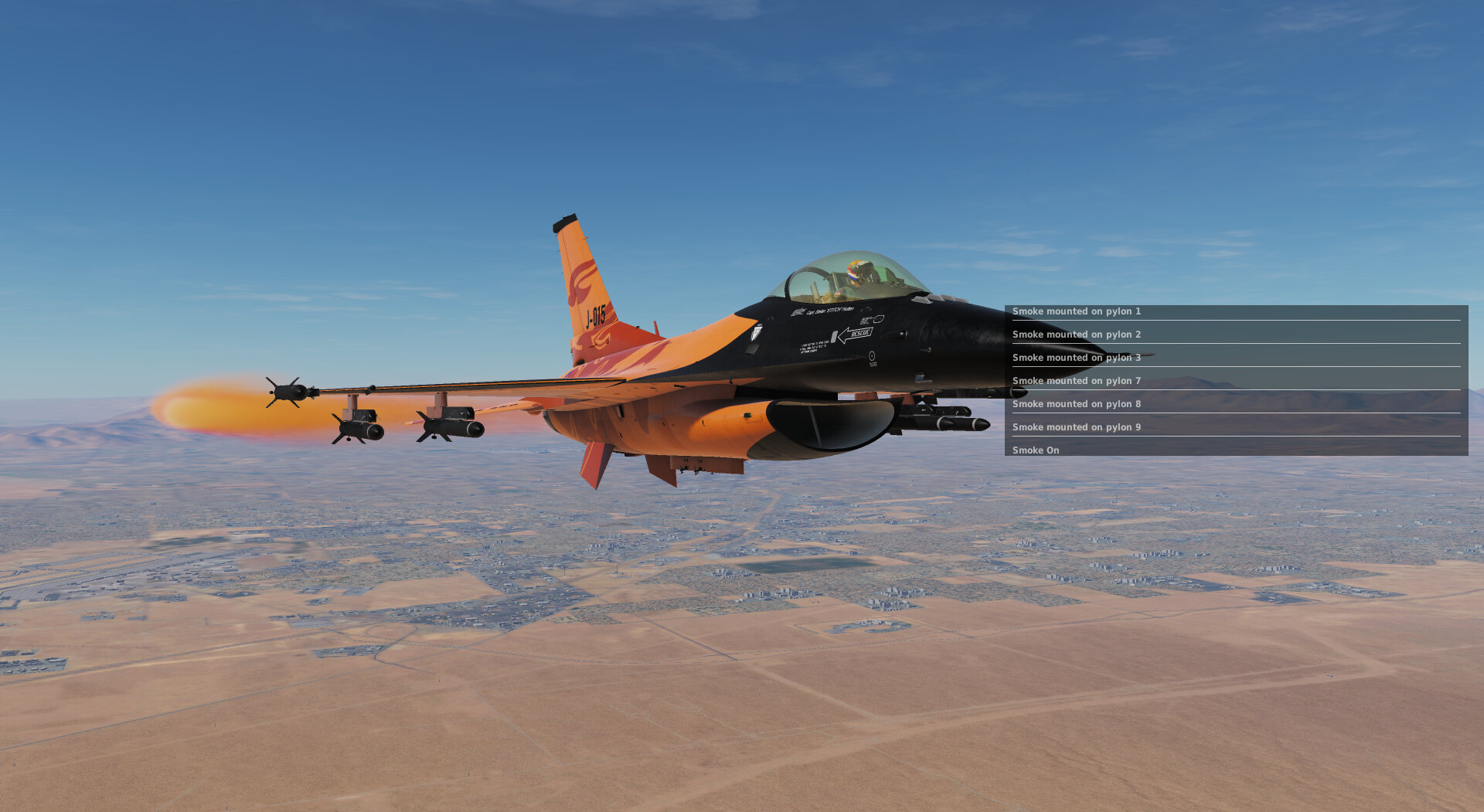 This mod enables the smoke-winders on the F-16C.  They work across all the AA pylons in a range of colours.