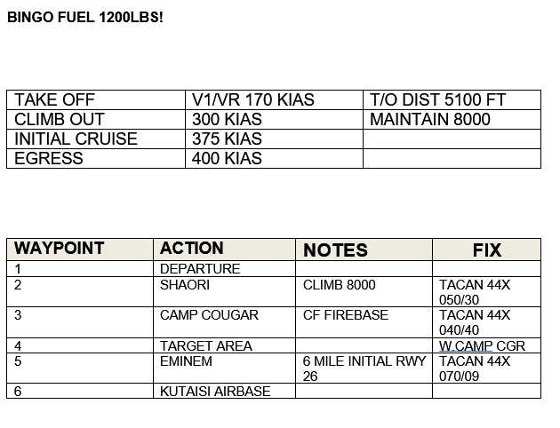 Today’s mission will be an on-call close air support mission to support Georgian and NATO ground force in retaking the village of Iskari.  We will likely be tasked with destroying a fortified house on the west side of the town itself, so the jets are loaded with MK-82 and rockets.