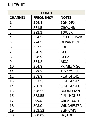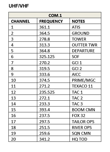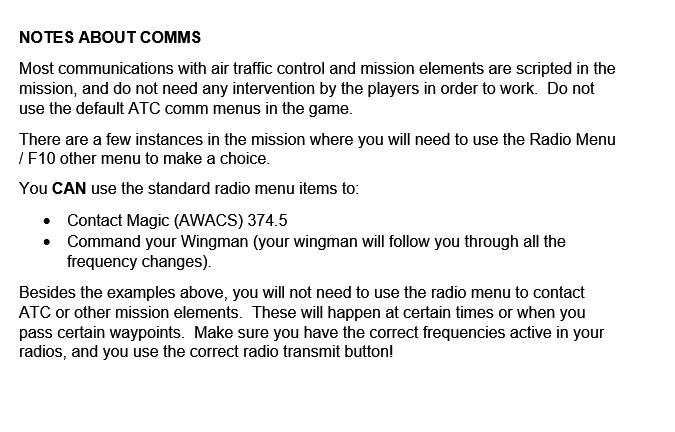 1.  Unlimited fuel for wingman -  Script added so when wingman's fuel is below 50% internal tanks, the fuel level is frozen.  No more wingmen running out of fuel during a mission due to AI behaviour.  (If they use the tanker, the fuel will go to 100% and stay there).