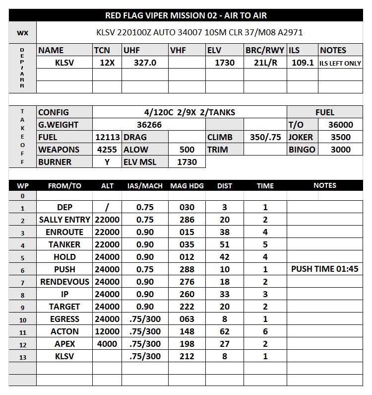 Welcome to Red Flag Mission 1.  My goal in creating this mission is to simulate a realistic air to ground Red Flag mission for the new DCS F-16C Viper.  In order to fly this mission successfully, you’ll need to execute critical tasks, from hitting your timing points to low level flying to possible air to air combat.