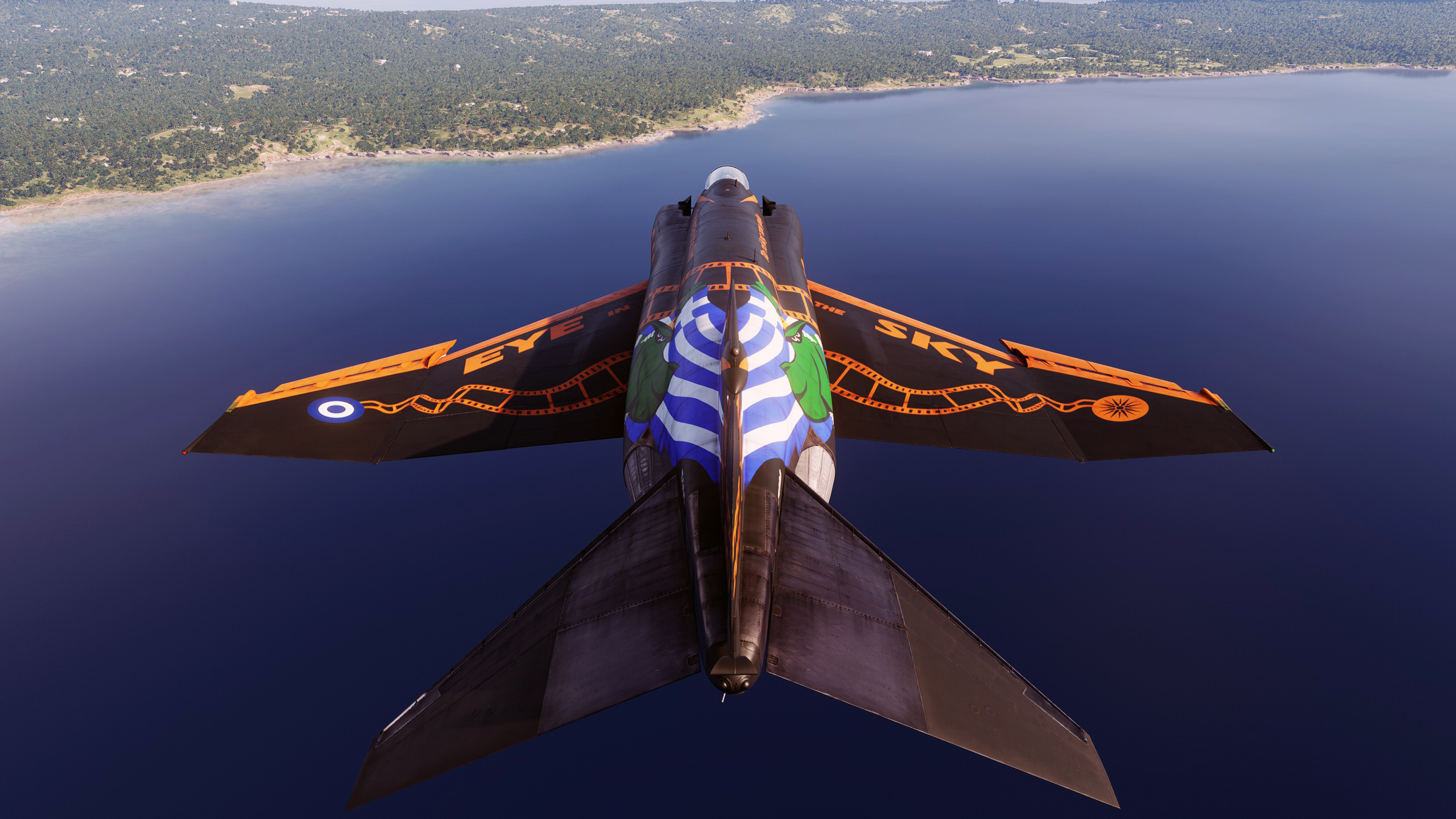 A fictional livery based on historic liveries of alternate airframes with custom squadron Art.