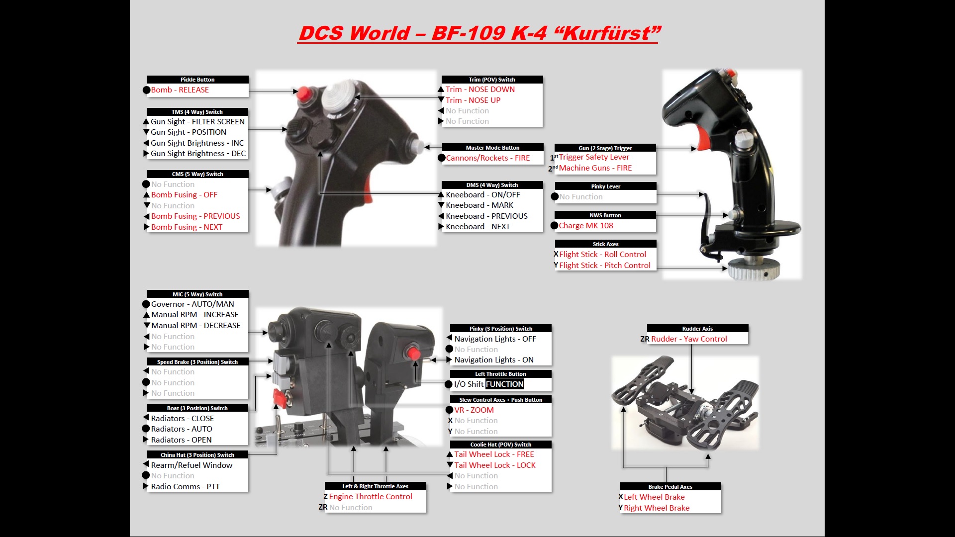 Here is a second selection of HOTAS layouts, using popular hardware, of several fighter jets and combat helicopters. All documents are in MS Word format and can be freely edited to the users own preference. Being one who likes to fly a variety of aircraft in DCS World I document my hardware mappings to help me remember what I mapped.