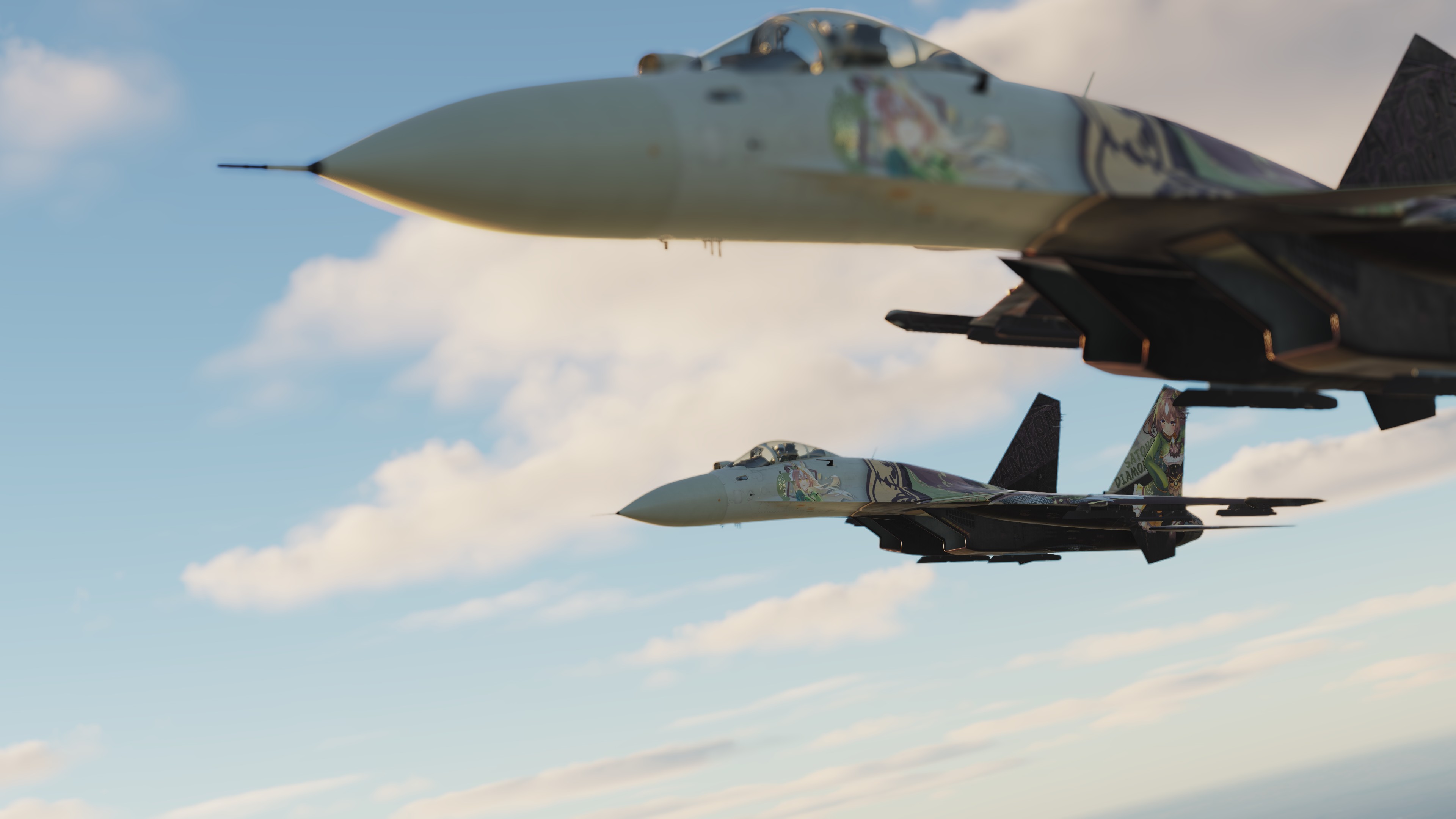This livery is an Su-33 adaptation of the "Fictional Anime Skin - Satono Diamond for F-15E Strike Eagle".
