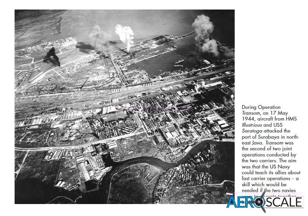 This is the second operation in the British East Fleet's "Oil War" on Japan. The USS Saratoga was ordered home for a refit. On its way to the Pacific, Saratoga was tasked with again joining HMS Illustrious in Operation Transom for a raid on the Japanese oil refinery at Surabaya, Java, Dutch East Indies. The only difference in the lineup from the Operation Cockpit mission was that Illustrious traded its Barracuda bombers for more capable US-built TBF Avenger bombers. Otherwise, the strike force was identical to Operation Cockpit.