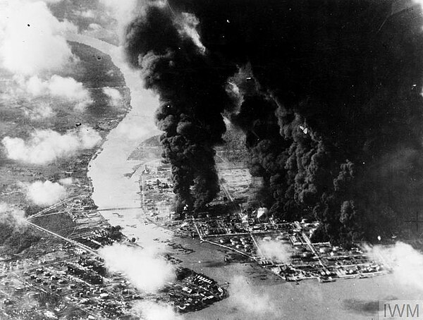 The first attackers destroyed 12 Japanese fighters before they could take off from the Surabaya . They also demolished the oil refinery.