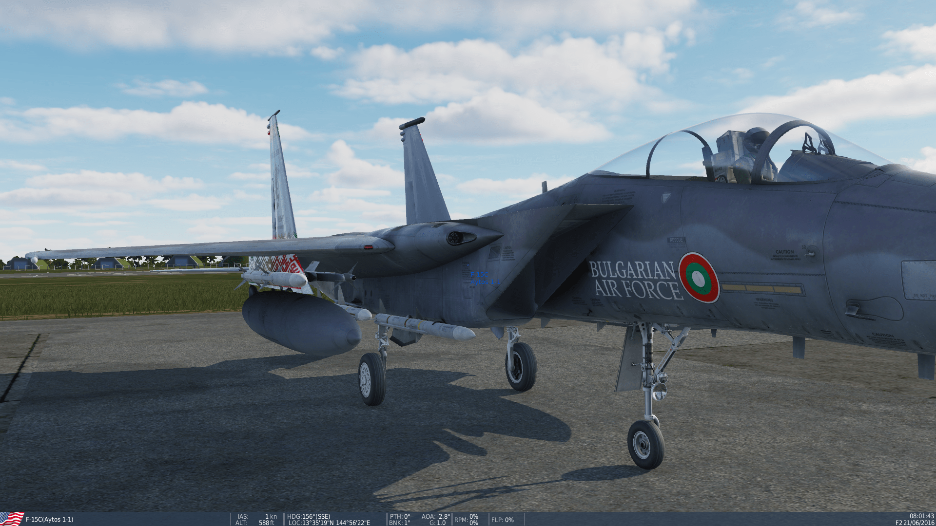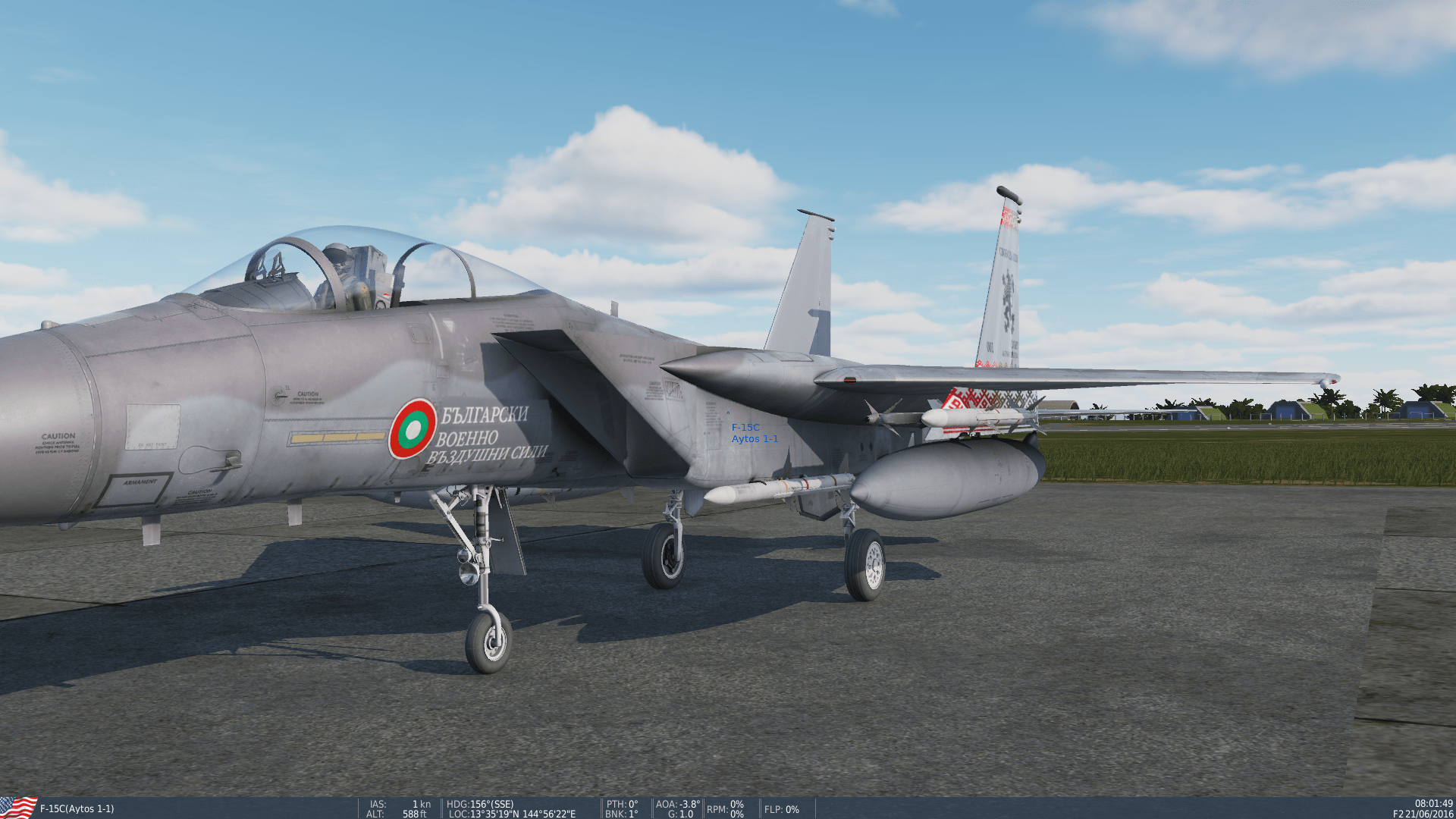 Skin, representing a BAF F15C, tact. number 001 with the tag Aerobase Graf Ignatievo. It also includes the Bulgarian air force roundel and text saying "Liberty or Death". Also in the bundle, the lion of the Bulgarian coat of arms is added as well as the national ornament pattern.