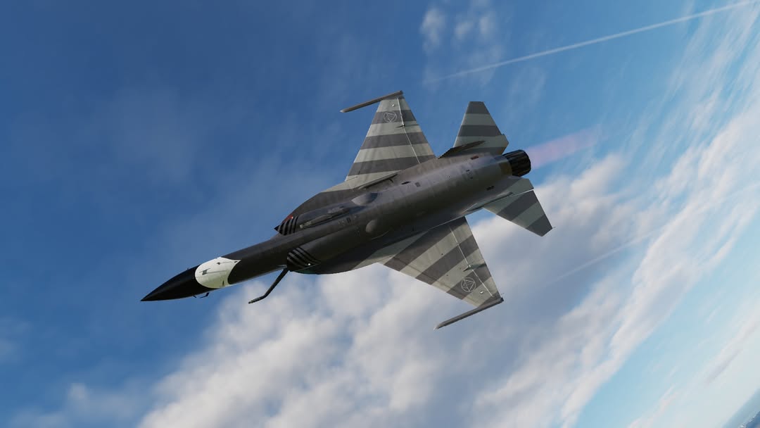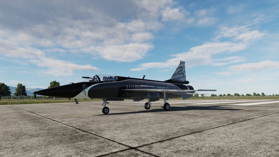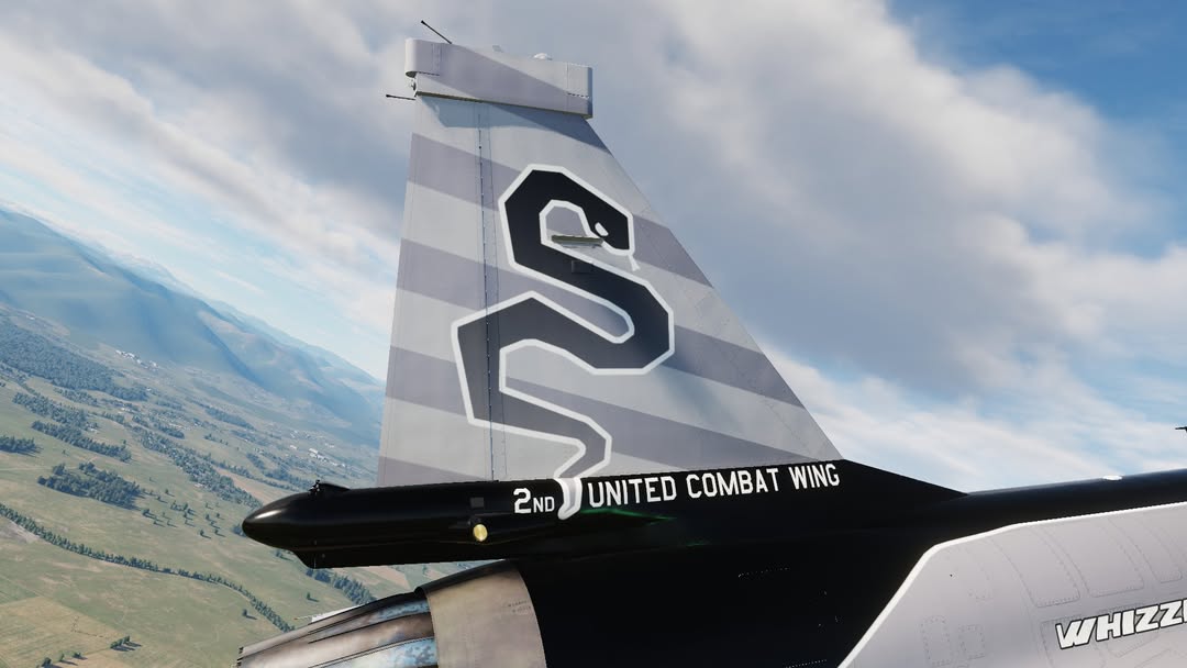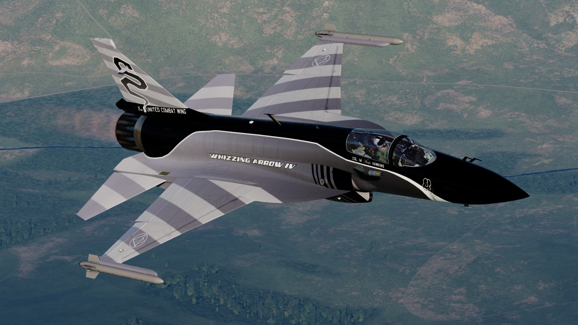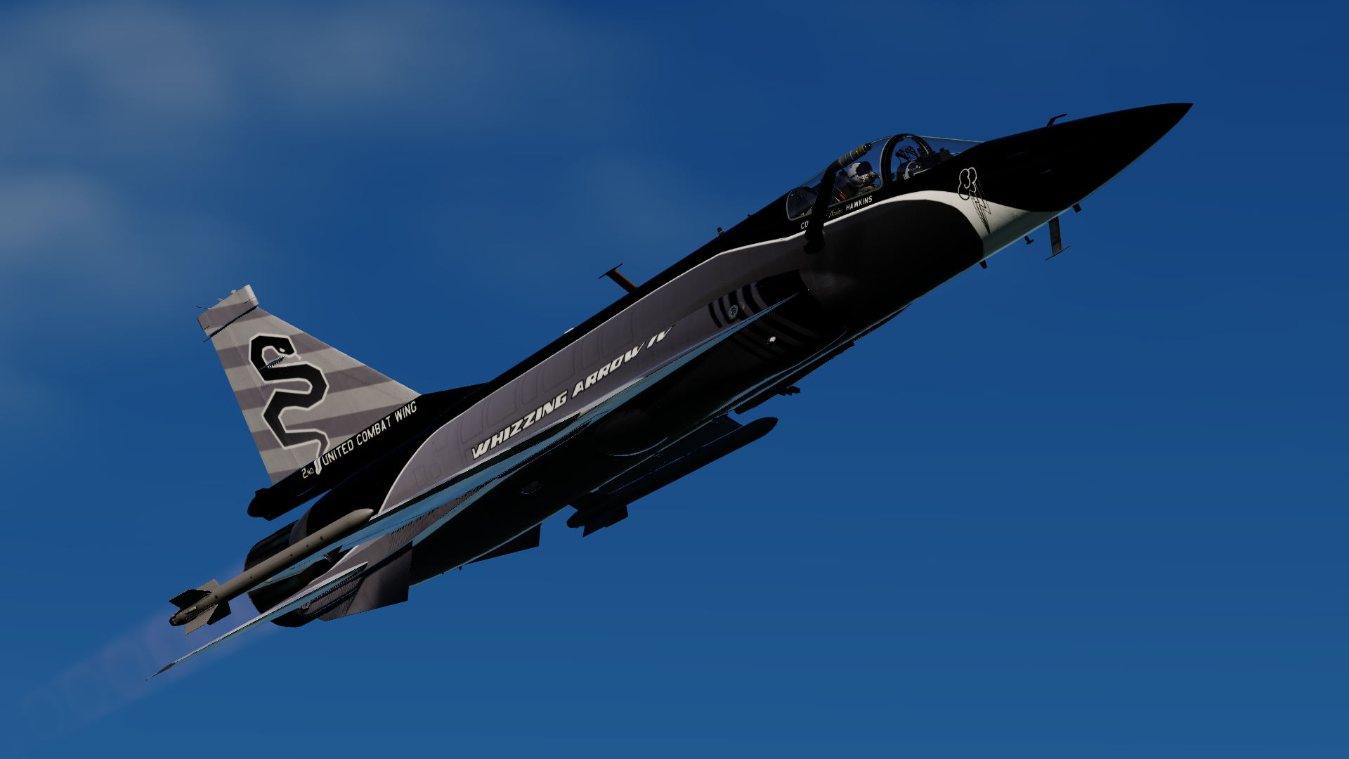 The JF-17 "Whizzing Arrow IV", painted in the image of the 2nd United Combat Wing of YSFlight, as flown by the Virtual Black Mamba Demonstration Team. Livery created by Tatzi, and based on the YSFlight F-20 "Whizzing Arrow III" by Ripley. Released by the Virtual Collective of Aerial Performers under the CC BY-NC-ND license.