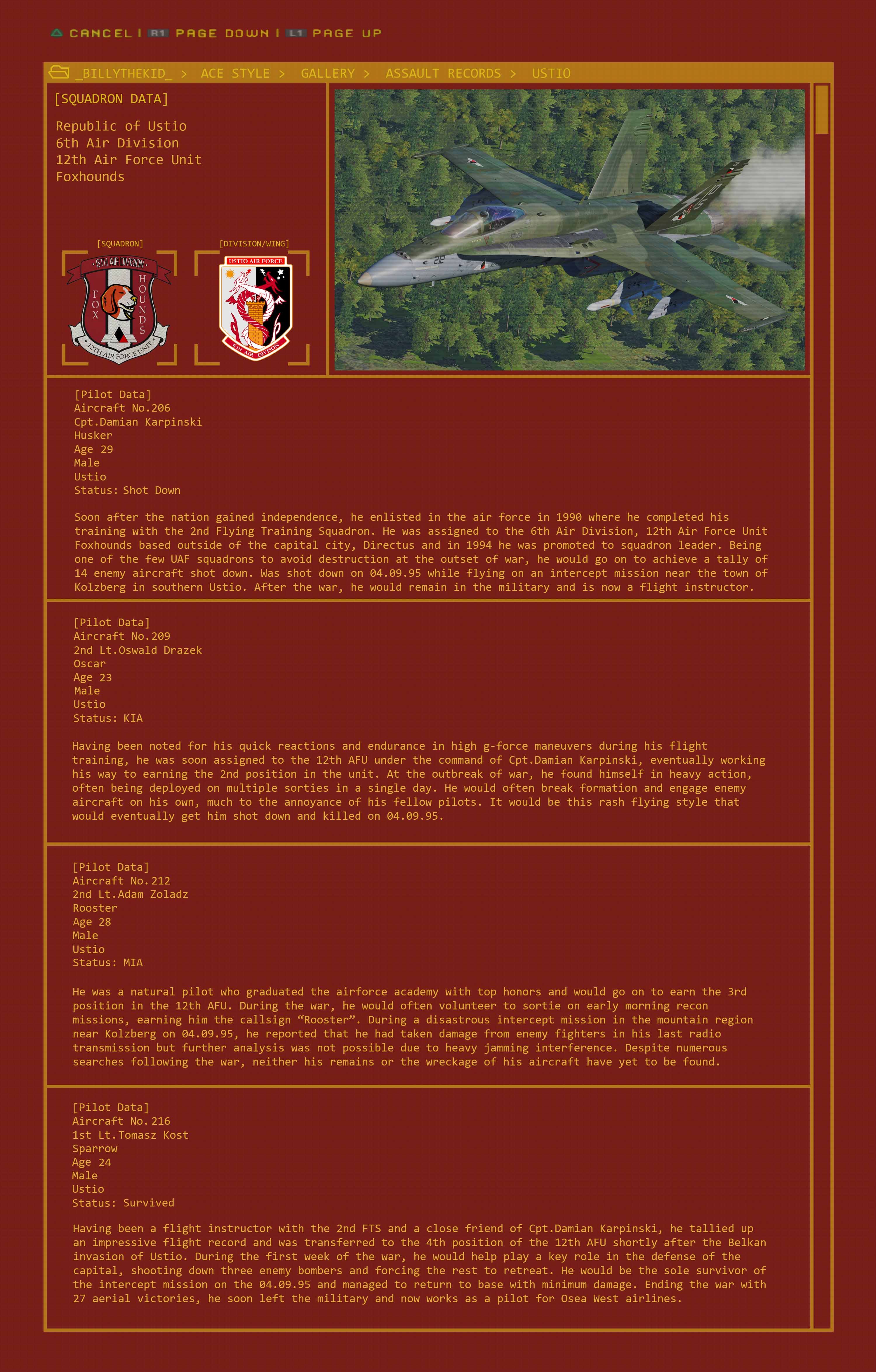 Home > User Files > Ace Combat - Ustio Air Force - 6th Air Division - 12th Air Force Unit "Foxhounds" F/A-18C Hornet