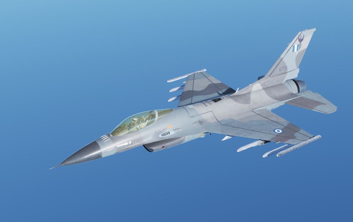 of the Hellenic Air Force (right) and a flying aircraft (left).