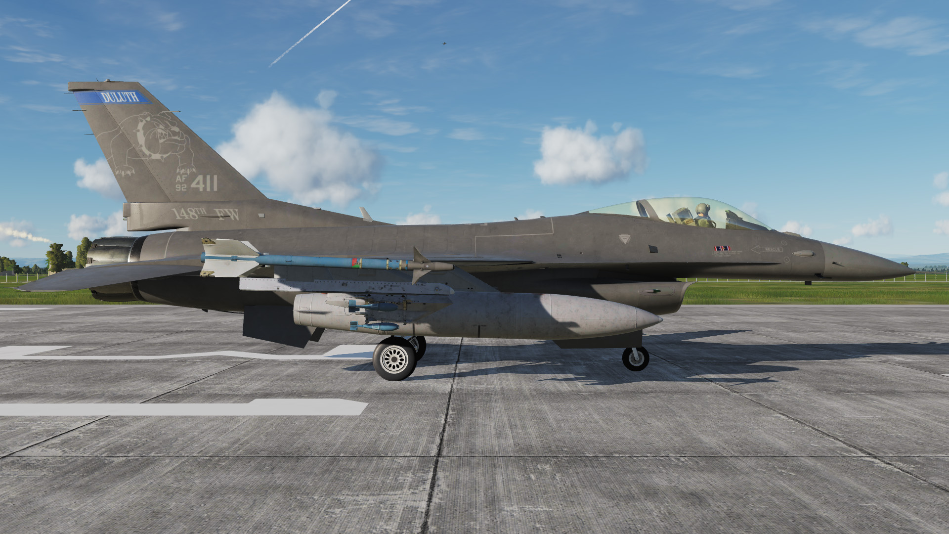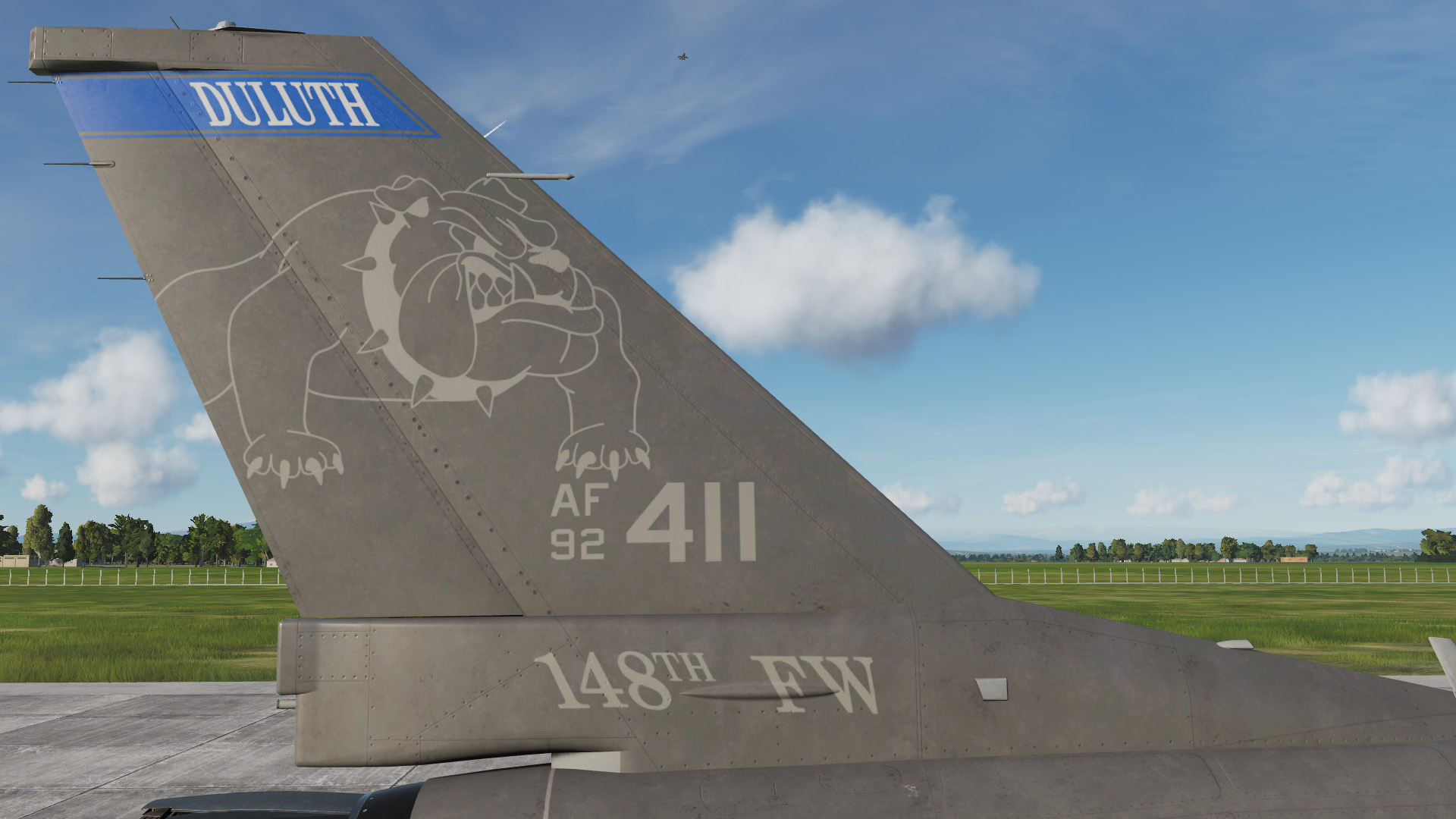 F-16C Livery for the 179th Bulldogs out of Duluth, MN painted in 'Have Glass'.  This skin is not totally clean and therefore, plastic-looking.   A lot of the weathering has been tempered down to be faithful to the needed RCS reduction of have glass coating.  The real life 179th birds are immaculate so I spent a great deal of time trying to find a nice balance between wear and the newly-painted look of their real-life counterparts.  The canopy yellowing has also been toned down and there are no pilot names.  Enjoy!