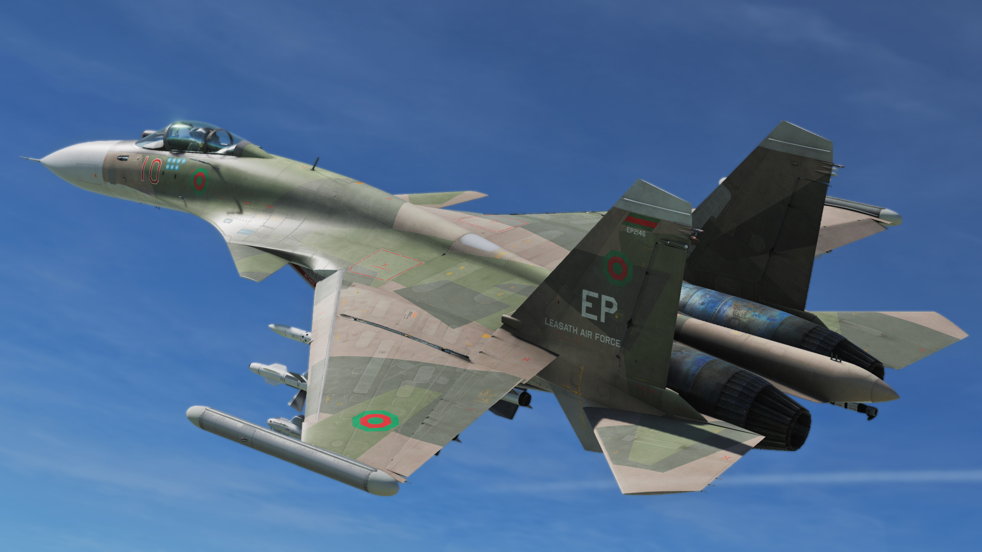 SU-33 Flanker of the Leasath Air Force 5th Fighter Wing, 6th Air Brigade "Cardenal". There are two versions of this livery, one in English and the other in Spanish.