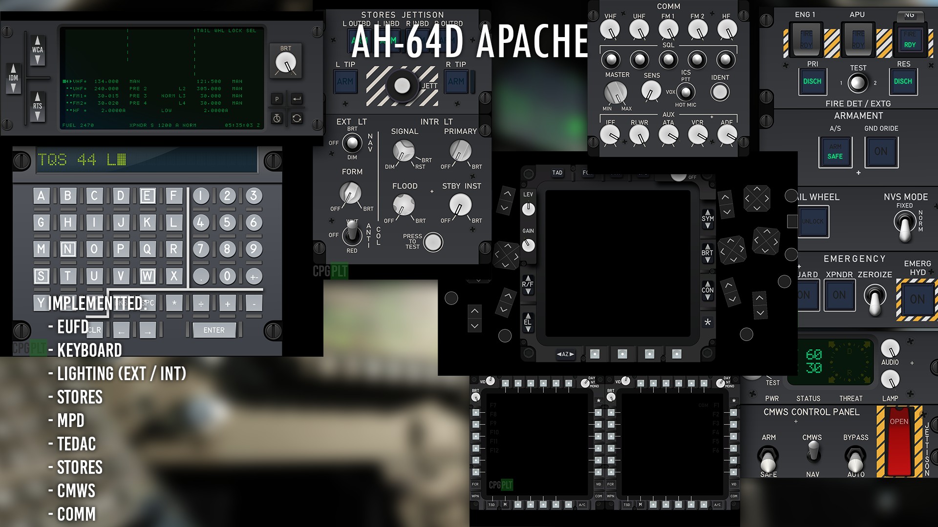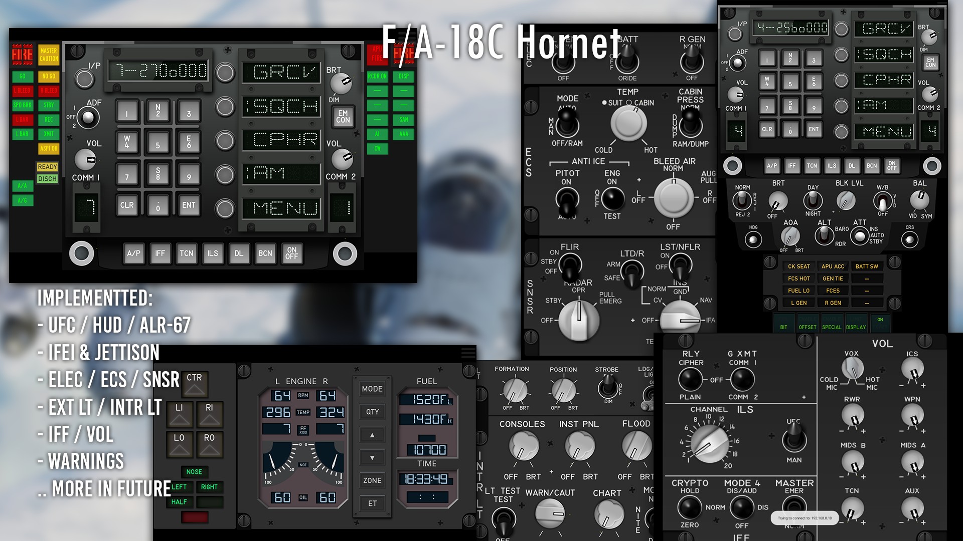 Control panels (UFC / ICP / other panels) for DCS World. For working You need to download and install Lua export script for DCS World from here: